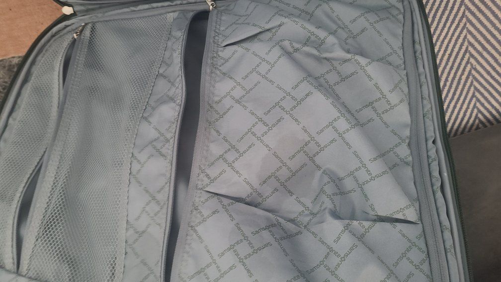 Expandable, Sturdy Samsonite-wheeled suitcase-Checked luggage Has a retractable handle and smooth-rolling wheels. Has handle to easily pick up and load. 2 Front pockets for easy access. Spacious main compartment with 2 pockets inside to keep things secure. Easy to travel with Great for travel!