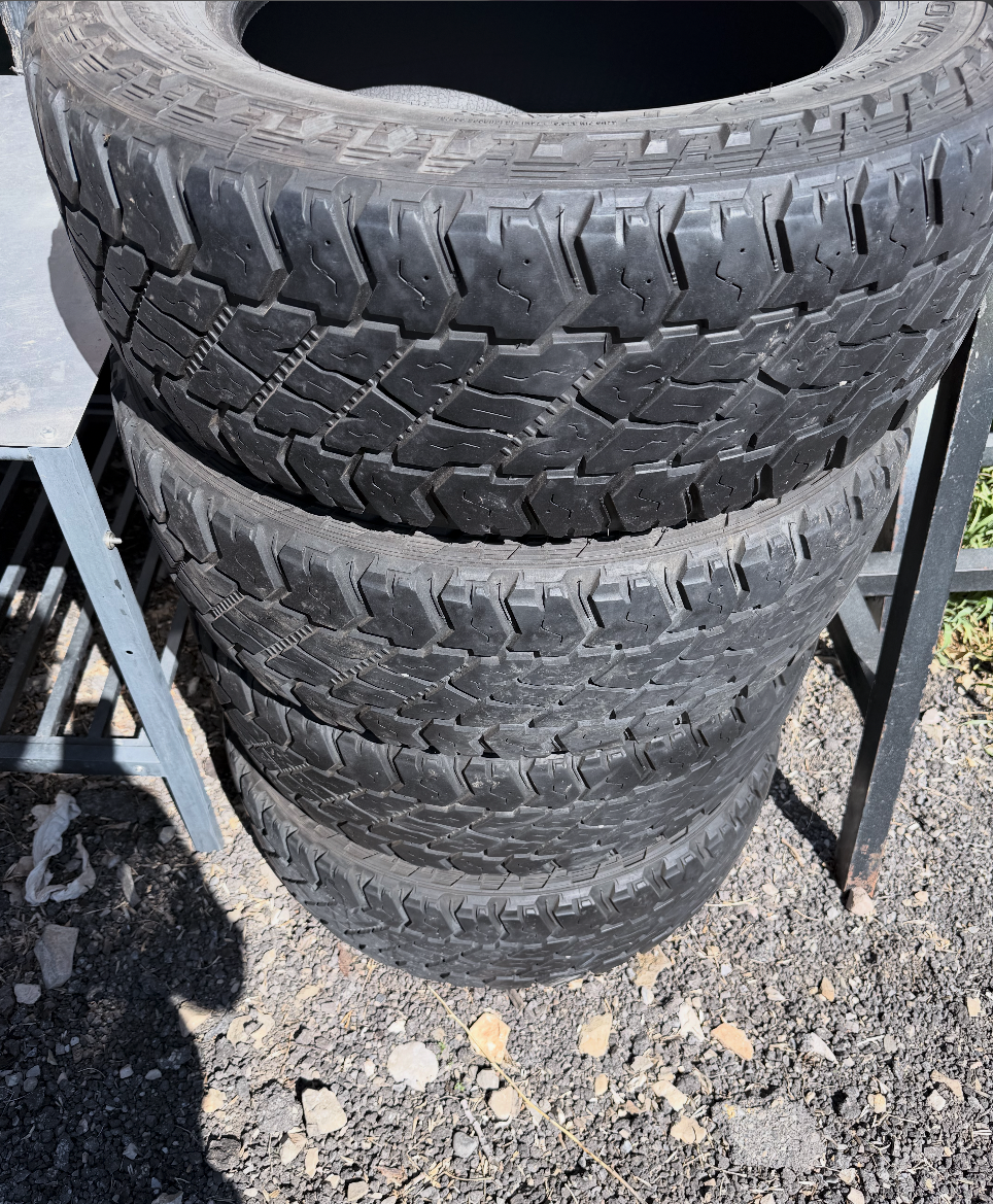 Set of 4 Cooper Discoverer S/T tires in great condition with approximately 70% tread remaining. Load Range E—heavy-duty, perfect for trucks.