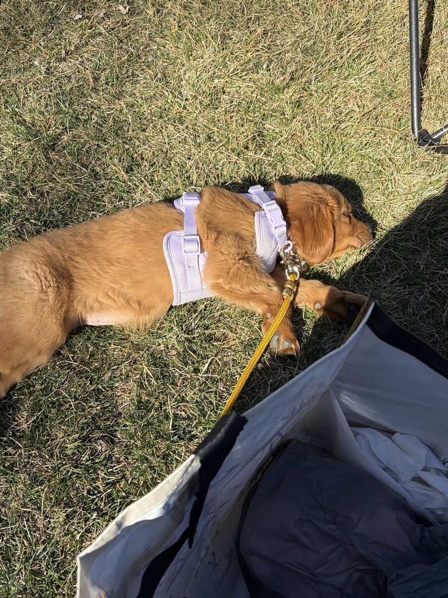 She is potty trained with my dog door! She hasn’t had an accident in the house in a few weeks. She does really well and know she needs to go outside on the grass.