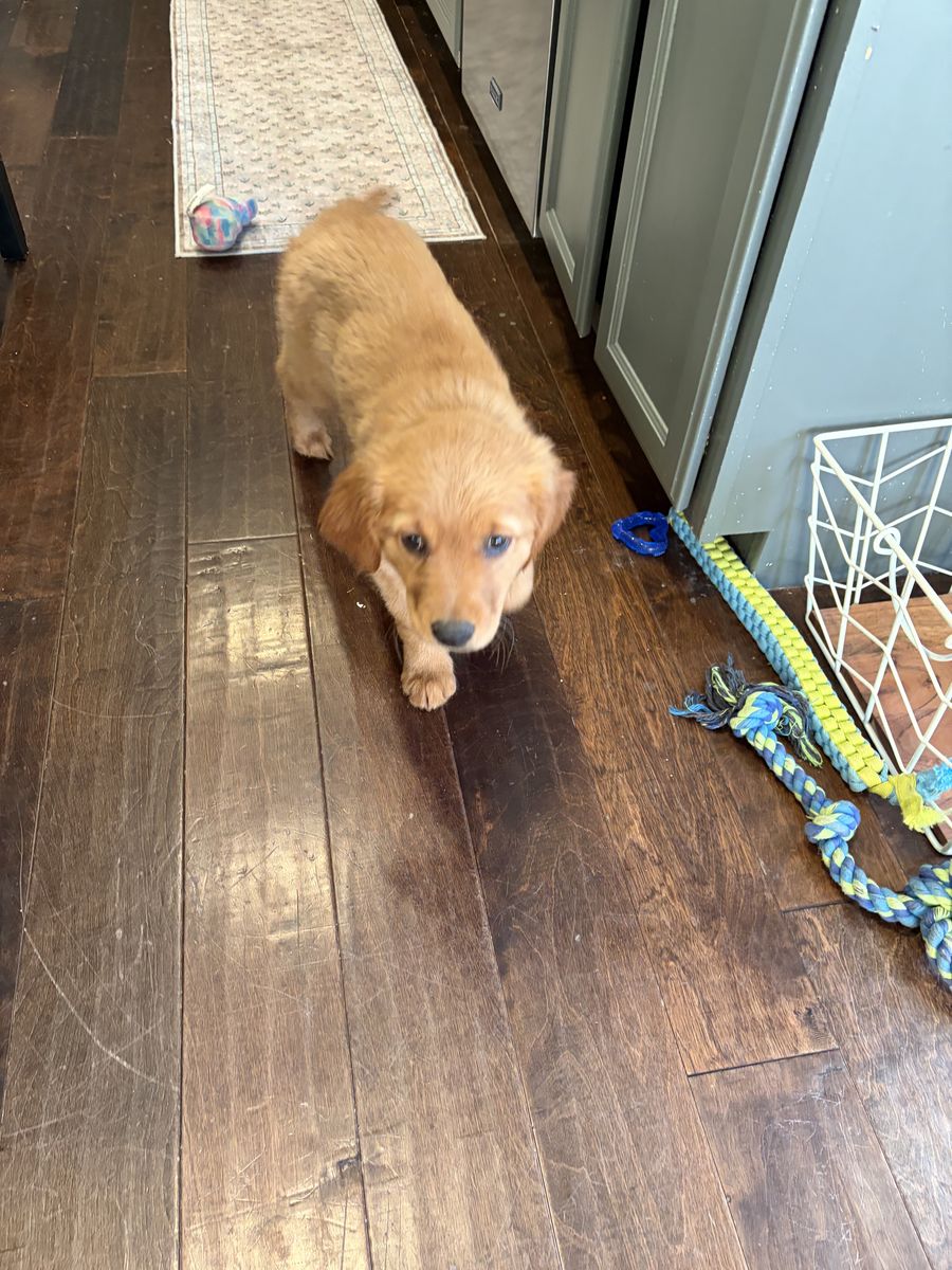 Golden retriever puppy!! She is an absolute doll!! She is so sweet she loves to be loved on! She loves to cuddle! She also loves to play! She sleeps through the night in her crate! She dose really well in her crate!