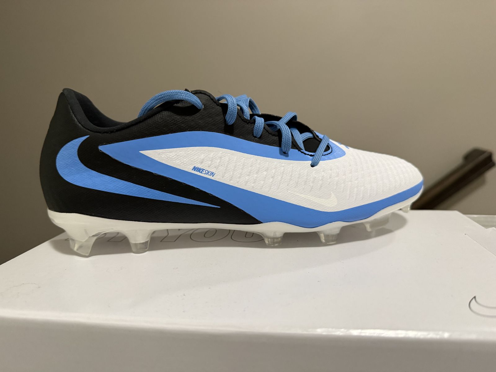 VenmoStart your spring season with these custom Nike Phantom 6 Low Academy cleats—built for precision, control, and speed. These were custom ordered but never worn because they were too small. Custom colors and design. There are two custom markings…a black 14 and black initials EM. Both are nearly impossible to see.