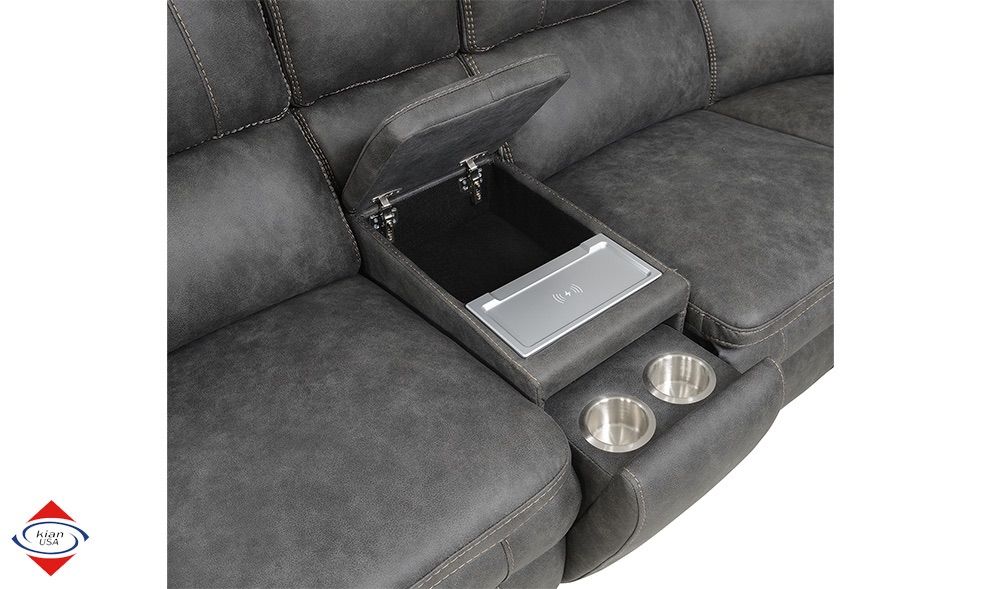 ApplePayThis great sectional features 3 power motion seats, hidden stainless steal cup holders, usb ports, and storage in each arm.