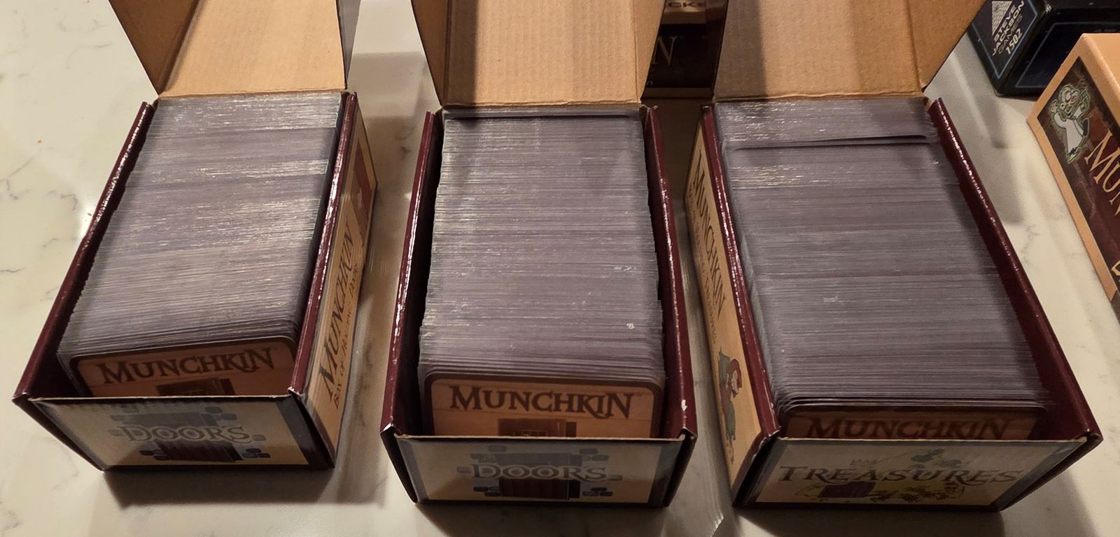 Also included with the original Munchkin version are 2 Doors Box of Holding and 1 Treasures Box of Holding (holding expansions and promos).