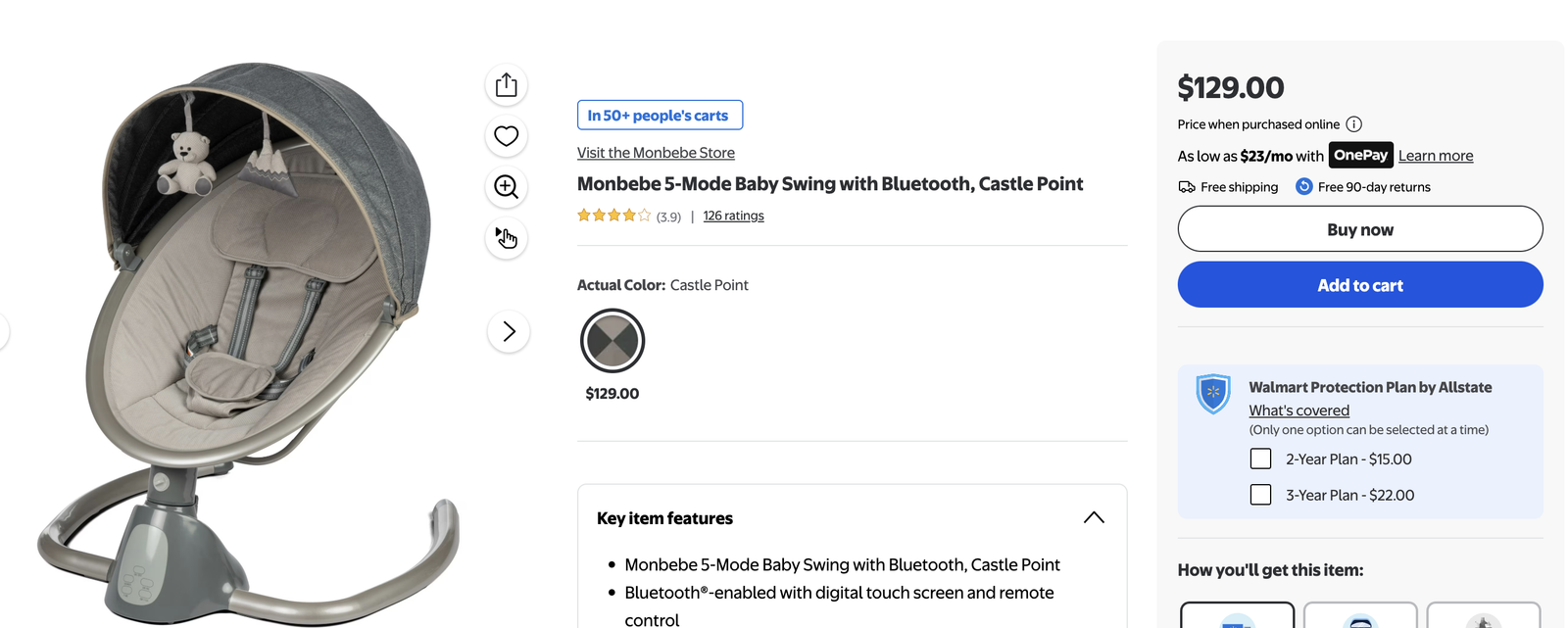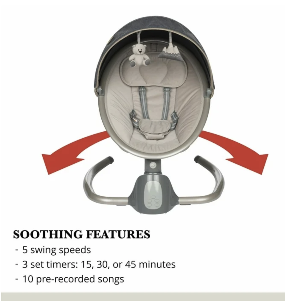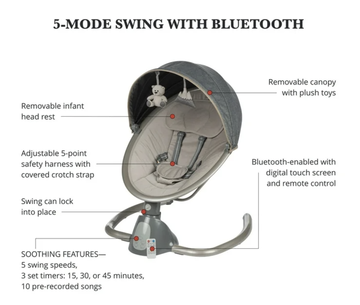 Monbebe 5-Mode Baby Swing with Bluetooth, Castle Point