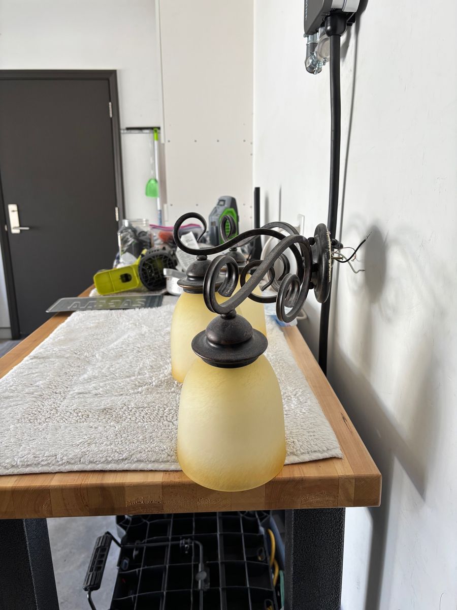 VenmoBeautiful wall sconces. Amber glass with dark oil bronze finish. Wonderful over bathroom mirror. I have 3 of them. Asking $15/ea.