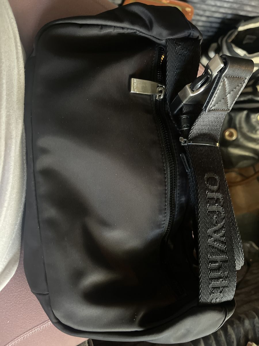CashAppThis is a very well made Fanny pack, plain flat black with a good size wide wrap around strap with a shinny silver colored snap clasp. Off-White written middle front in off white color. genuine, brand, pretty good sized front pack , with main pocket and another small zipper pocket, flat in back with pocket. Asking $350. Willing to trade if you have an RV! If not cash only. Text Tami 385-229-9872