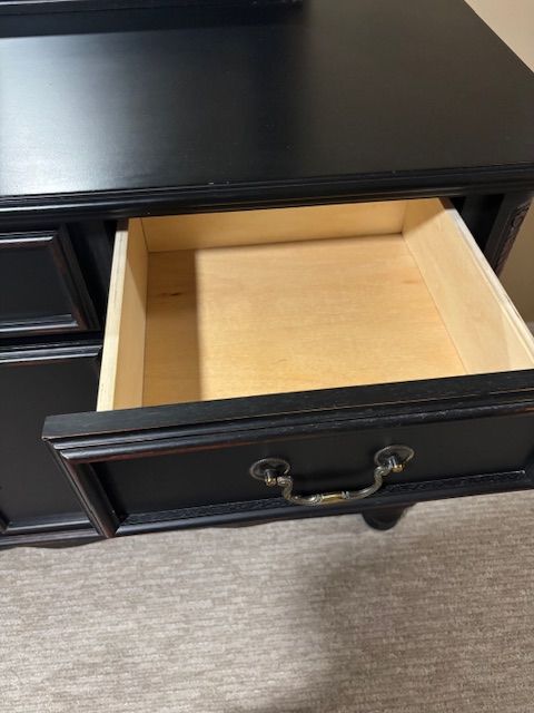Original Gardner Village furniture. Black 9 drawers and 2 shelves. Excellent condition. No scratches. Large mirror. Would sell together or seperately.