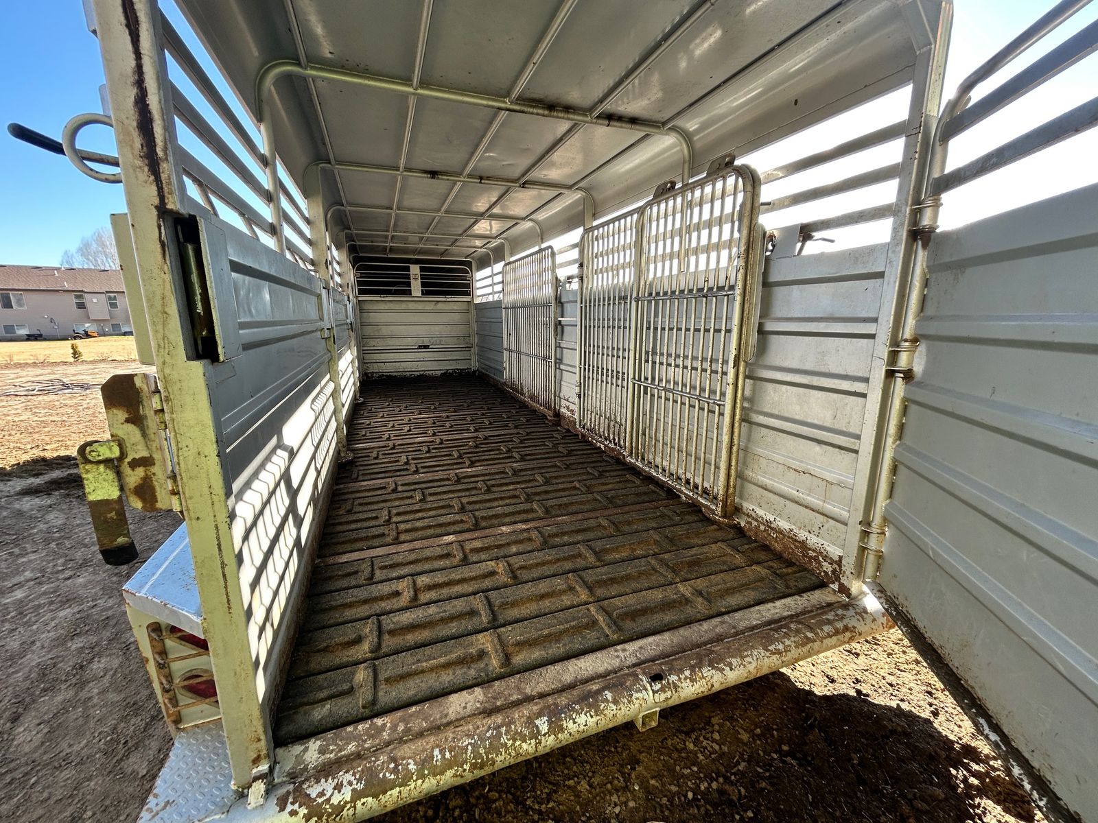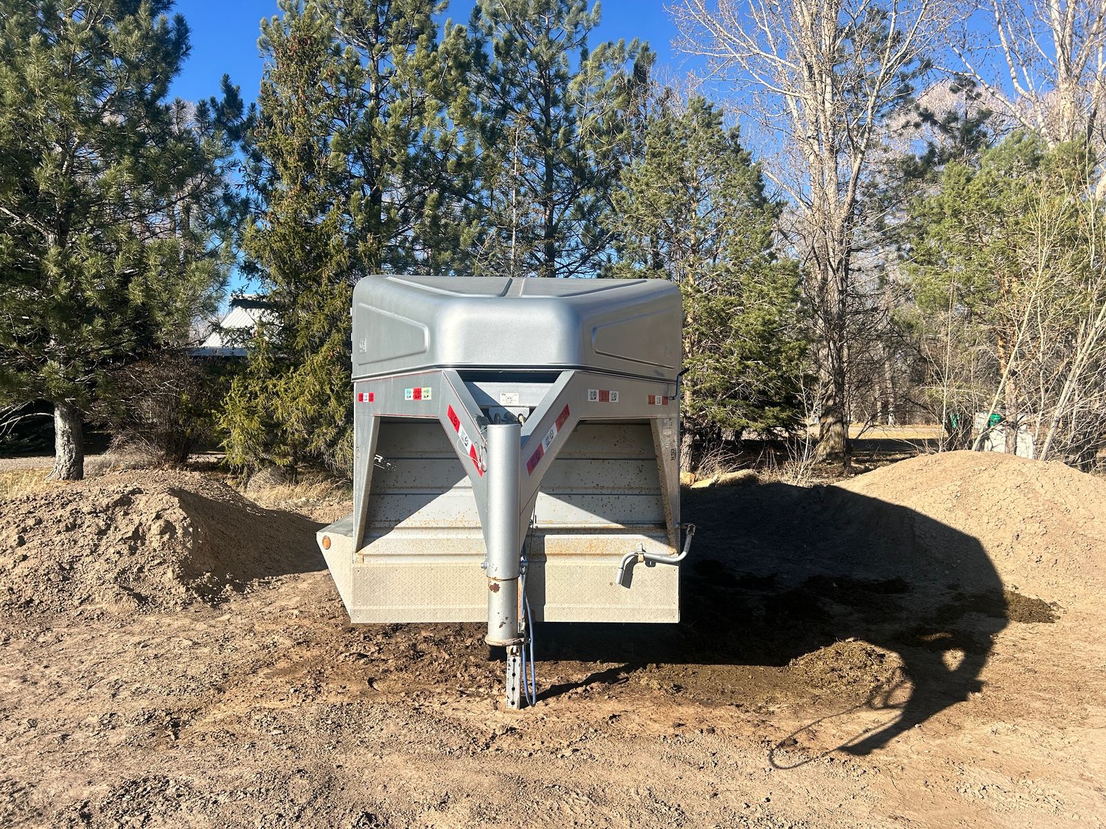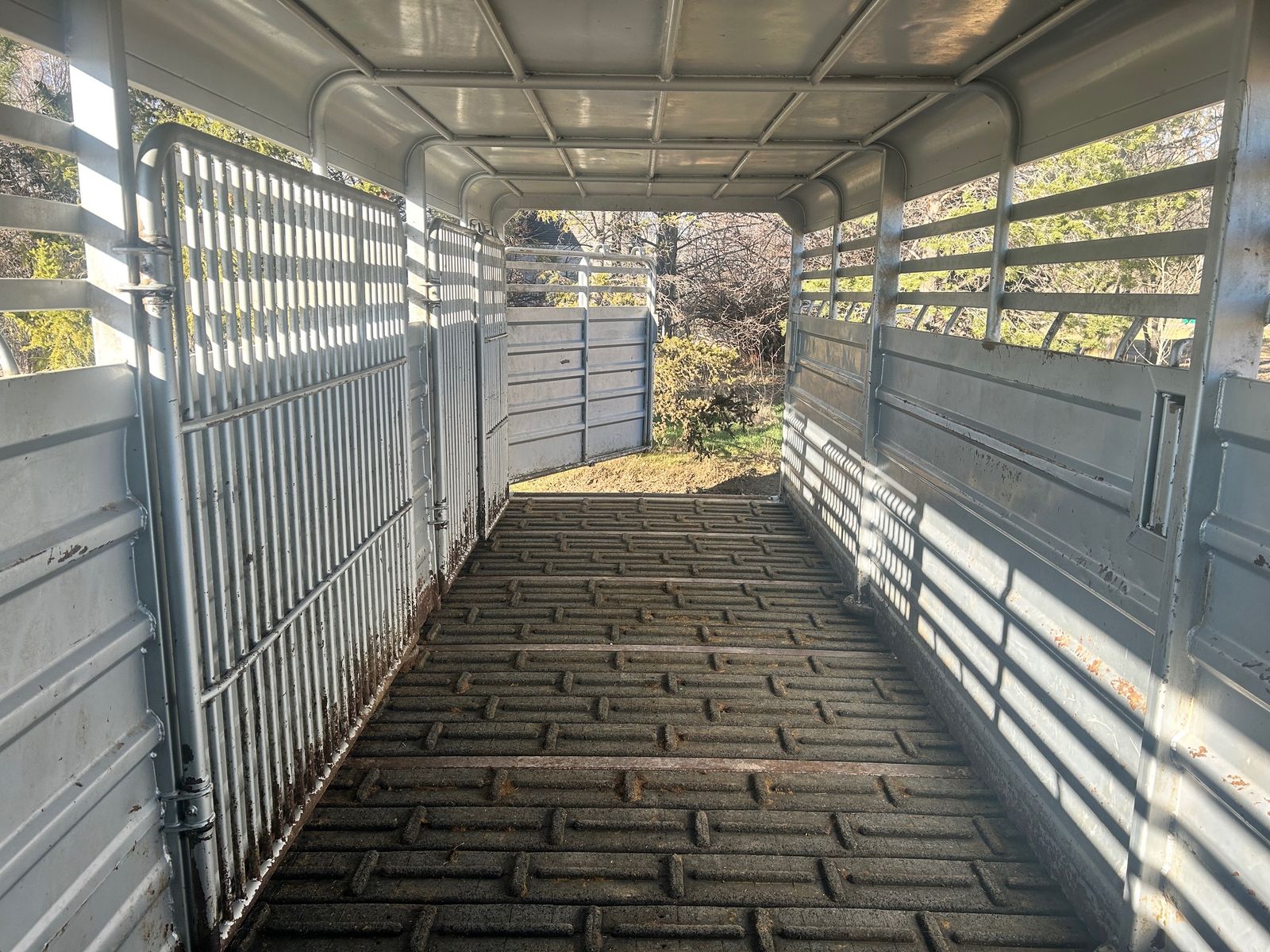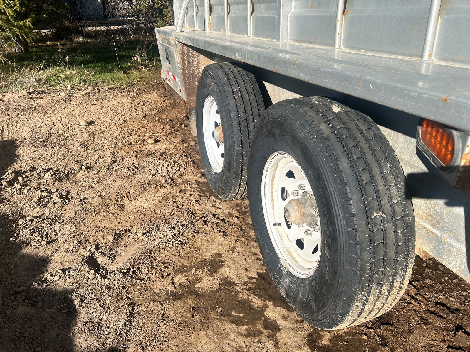 2023 GR 6’8”x24 Gooseneck Stock Trailer, 7k axles, rubber cleated floor, slotted for easy clean out, 2 center divider gates, one with slide, above gooseneck lockable storage, sliding rear gate with slam latch, rear storage boxes, LH front swing out door. Tires and brakes are in great condition. Comes with spare tire. Good solid stock trailer. Delivery option available.