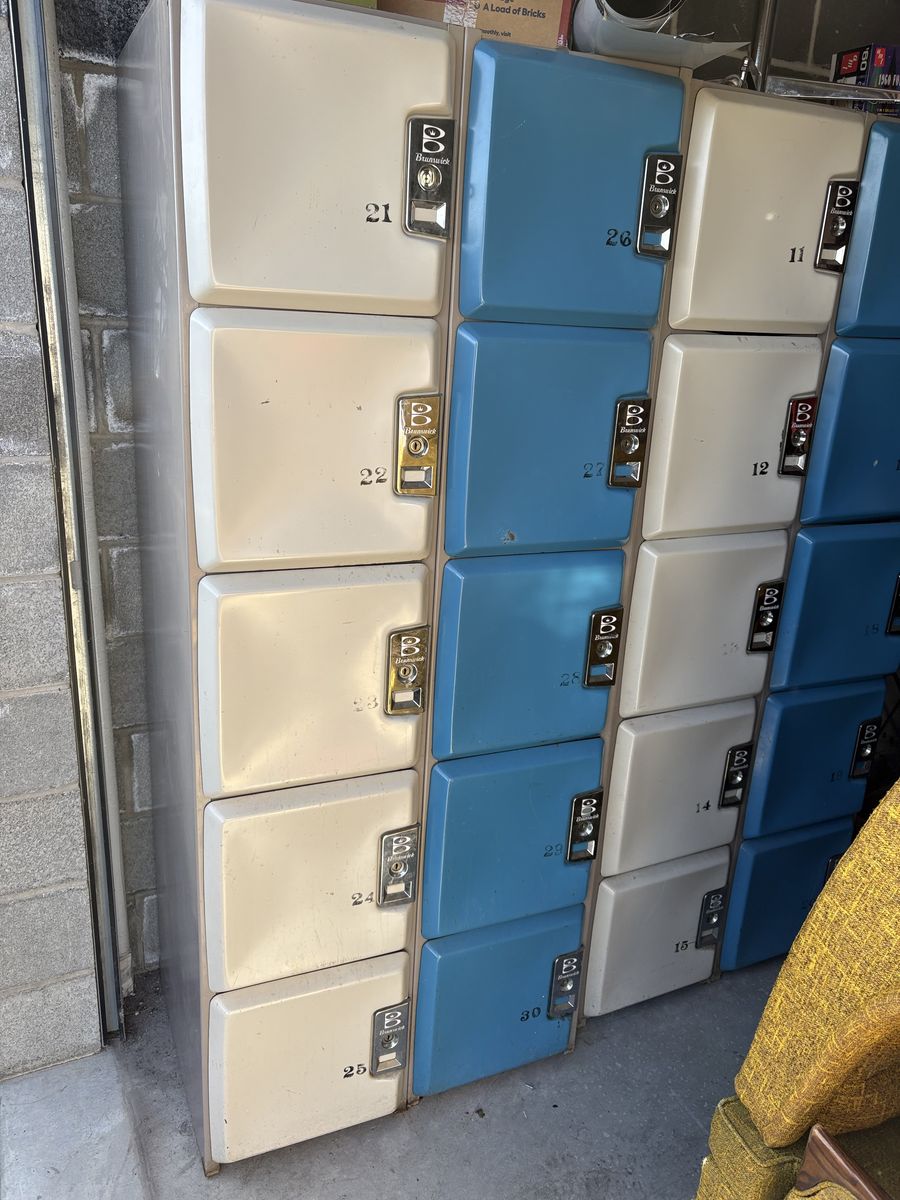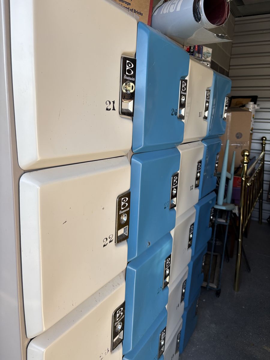 VenmoAwesome vintage Brunswick bowling lockers W key! Perfect retro vibe and offers lots of storage. Comes with the master key that unlocks each locker. The locker set is 2 lockers wide x 5 lockers tall. I'm selling one set of lockers and keeping the other
