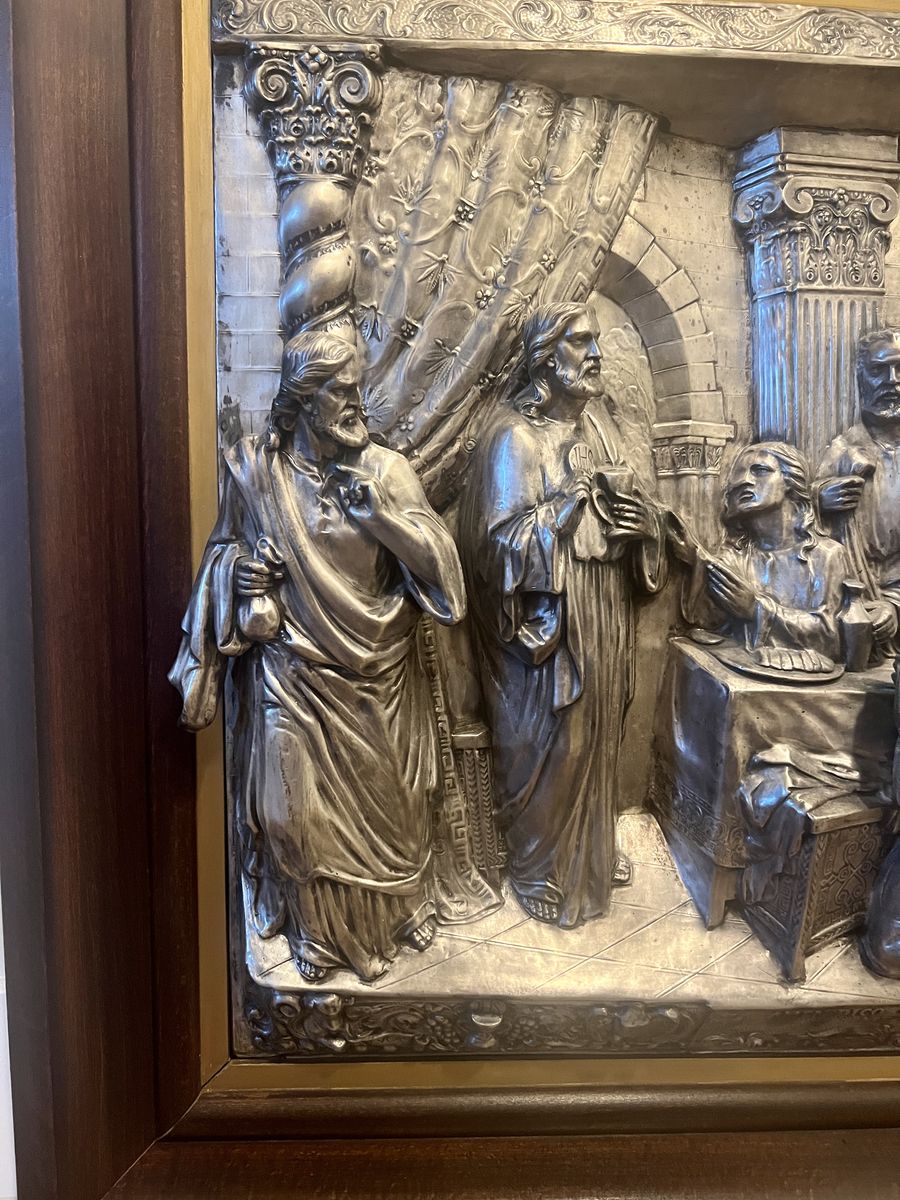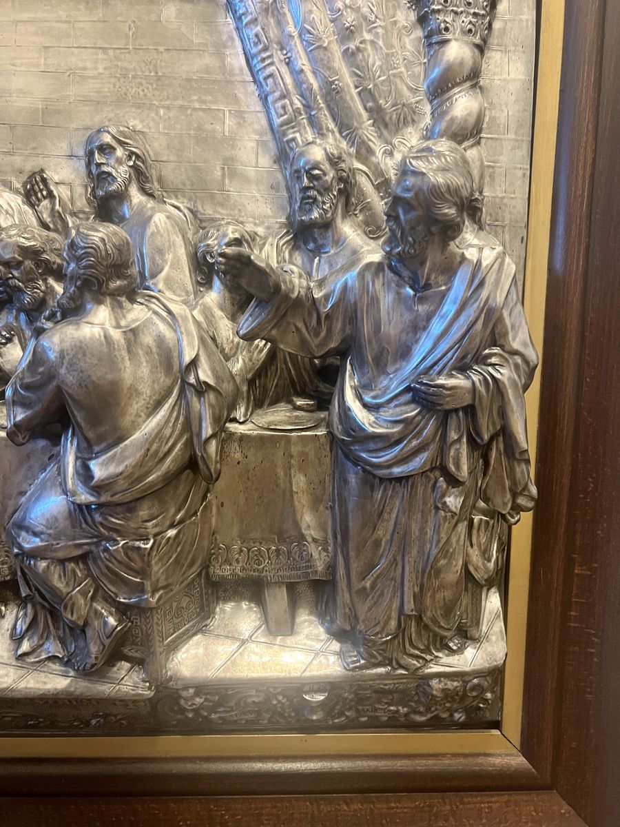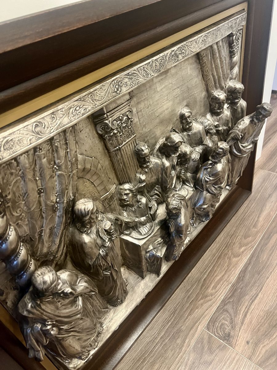 VenmoLarge, high relief, wall Plaque - "The Last Supper" - Influenced by the art of Raphael 37 1/2" x 28 1/2" x 6" Deep. Beautiful art work from Spain - Silver over Copper. Probably Ca. later half of the 20th century.