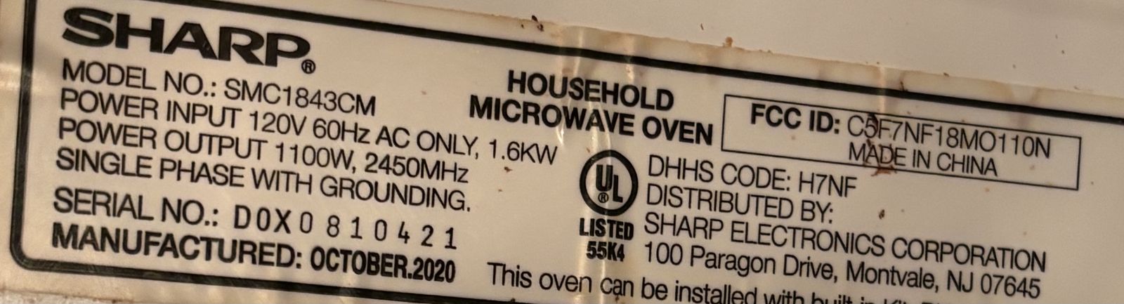 VenmoLarge-capacity Sharp Carousel Microwave SMC1843CM — perfect for big meals, large plates, and family use. A few years old but works great and heats evenly.