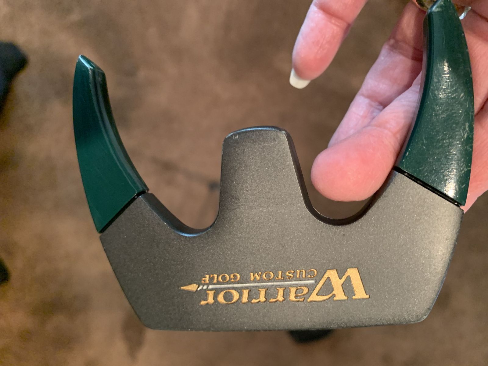 This is a 35" length right hand, Warrior Custom Golf Putter with green inlay.