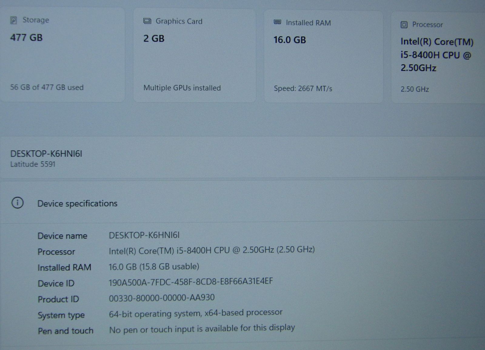 · Intel i5-8400u 2.5GHz / 4.2GHz Turbo