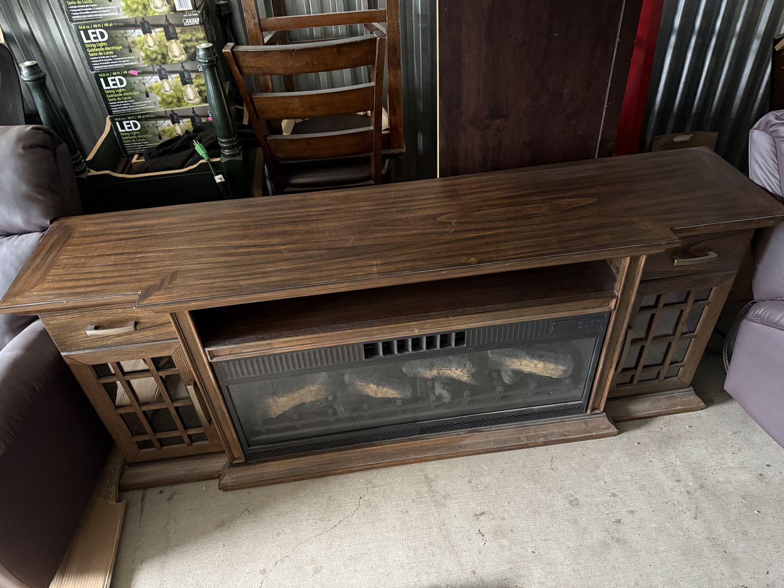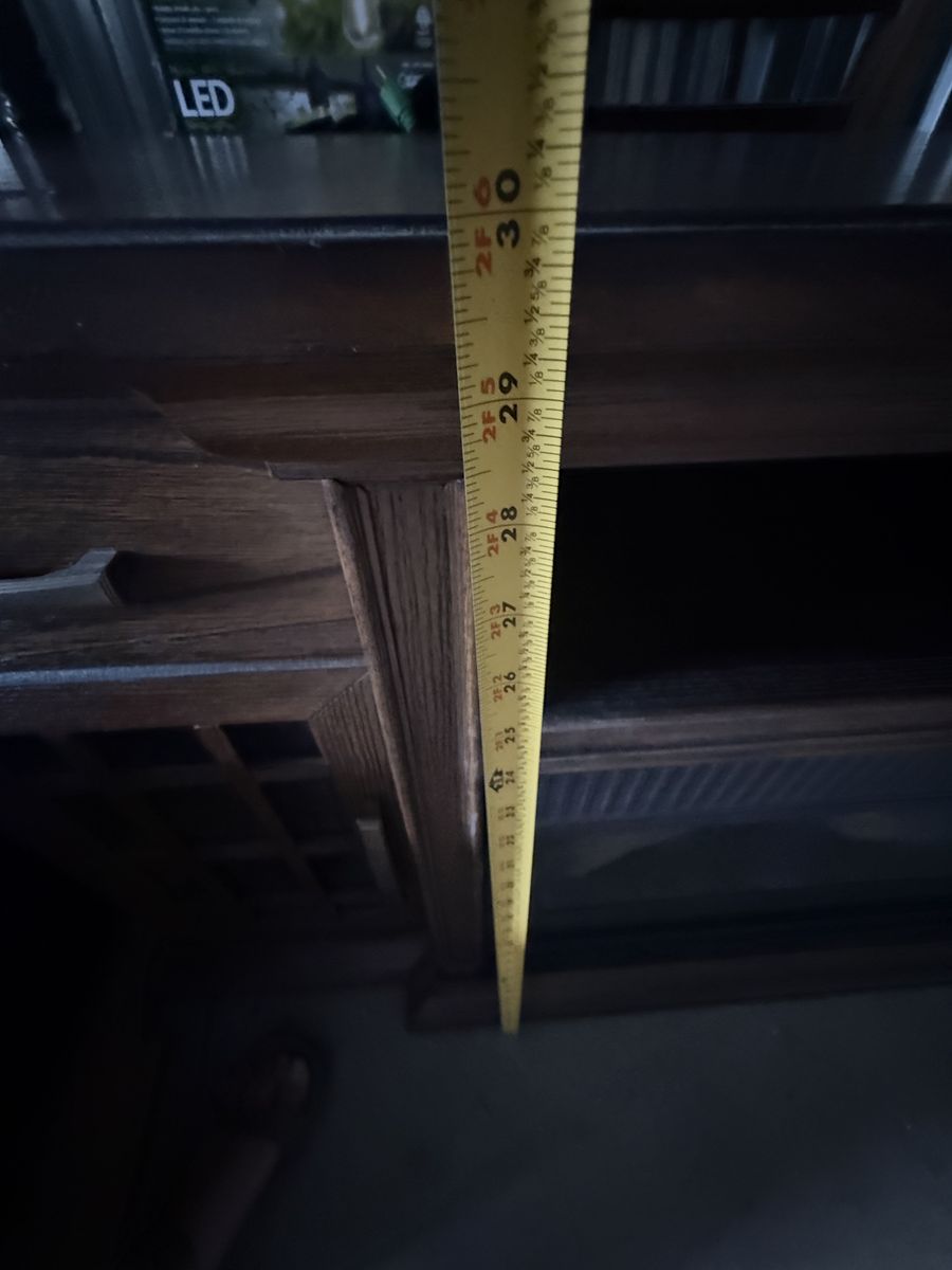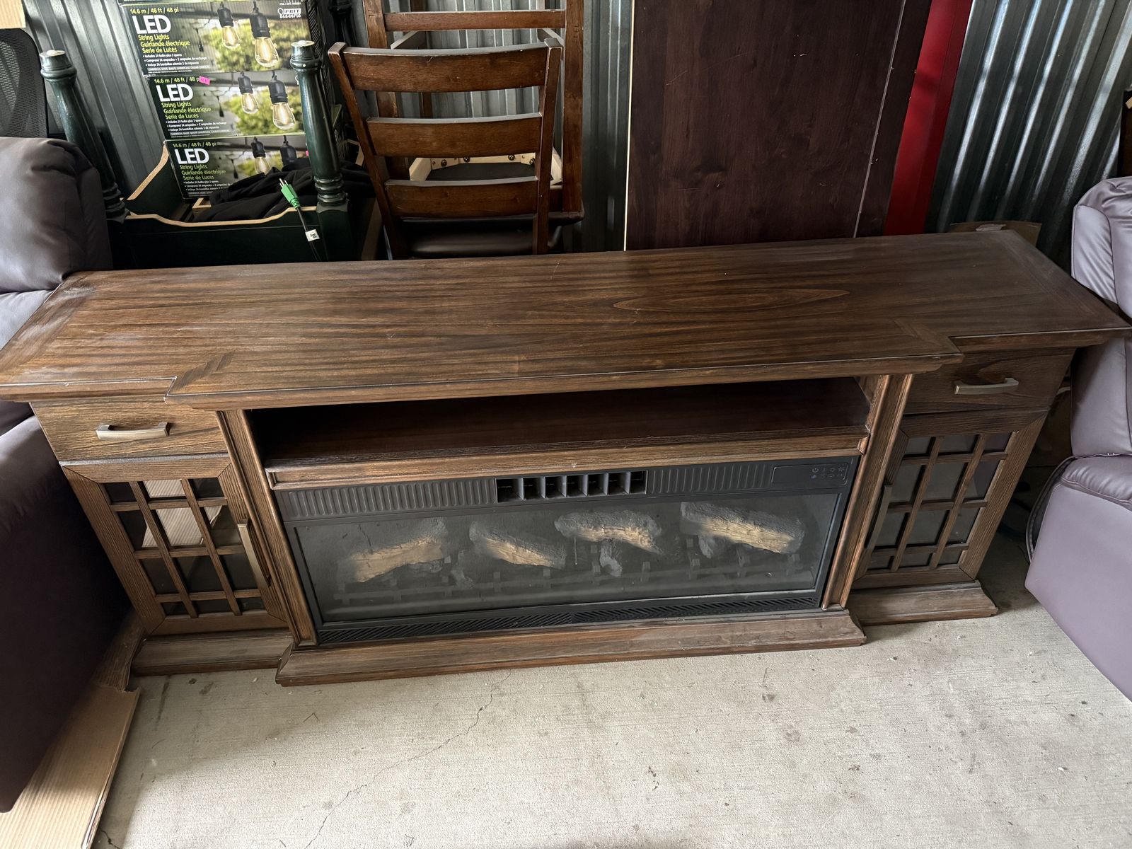 VenmoStill brand new. We bought it for our home but decided to go with something smaller. Dark wood finish. Electric fireplace. See pictures for measurements.
