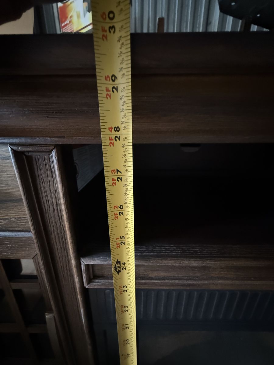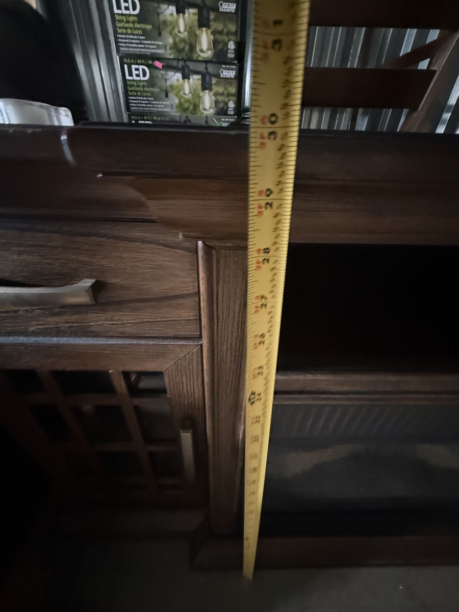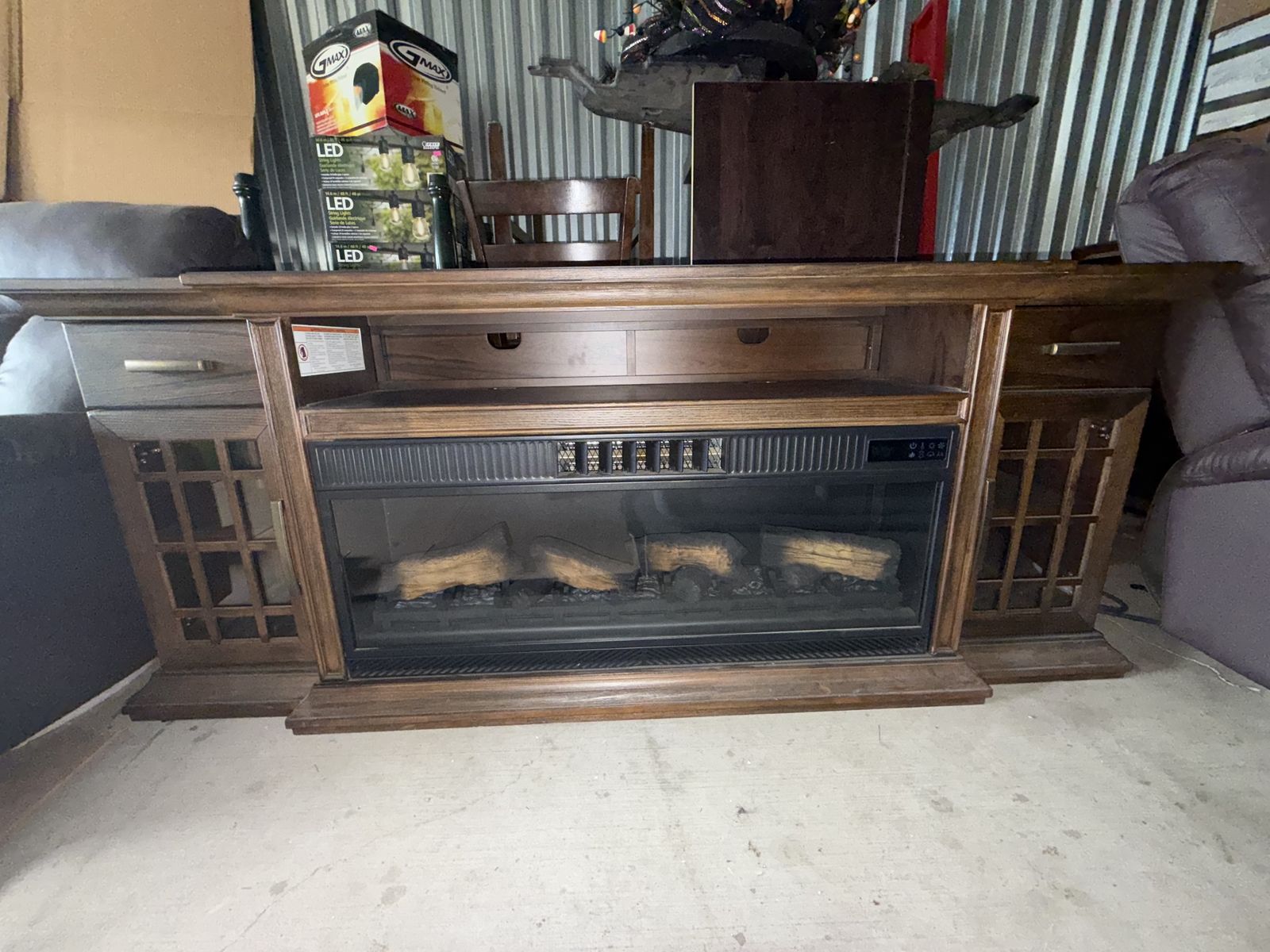 VenmoStill brand new. We bought it for our home but decided to go with something smaller. Dark wood finish. Electric fireplace. See pictures for measurements.