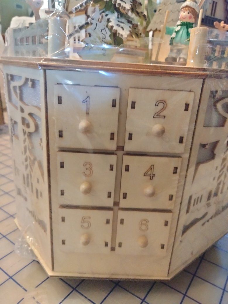 VenmoBrand new unopened wooden Christmas advent decoration from Michael's Crafts. Cute Winter Scene with battery operated light and animation. Original price was $53.99. I bought it half off, and am asking $15. I have four of them. I was planning to paint them and fill the draws for my grandkids for Christmas but did a different project instead. Still love these, they're darling.