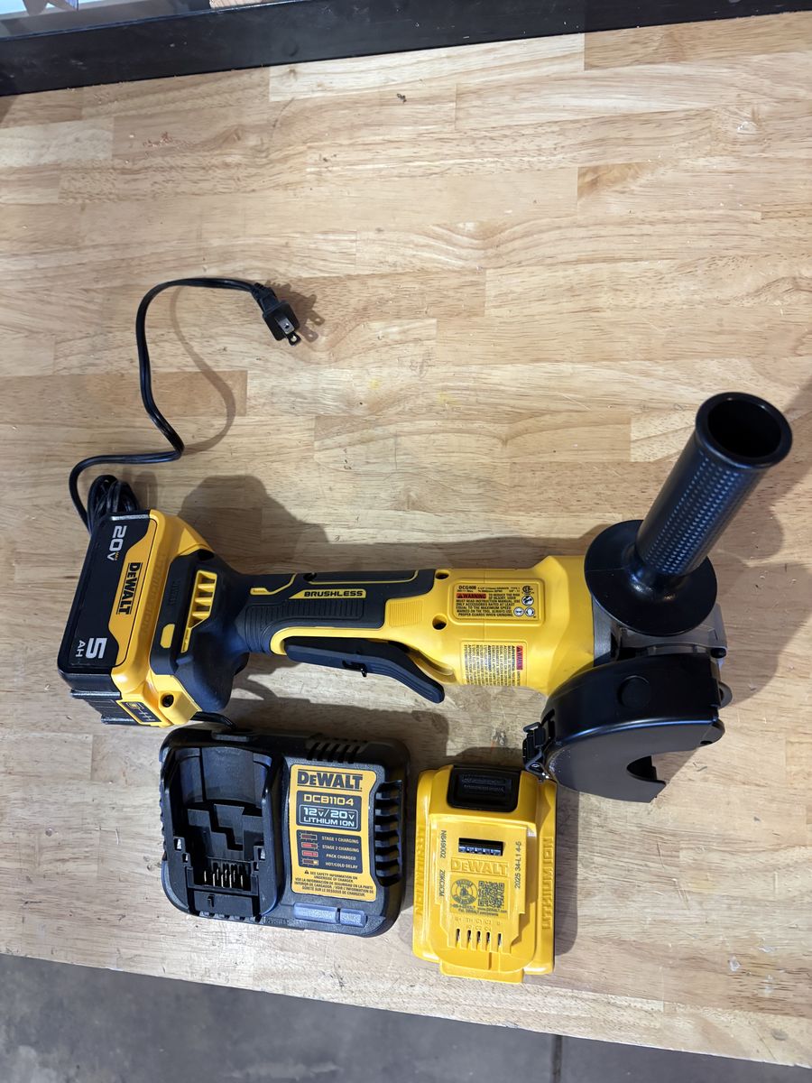 PayPalKit has cordless brushless angle grinder, fast charger, and 5 aH and 2 aH batteries. Essentially brand new.