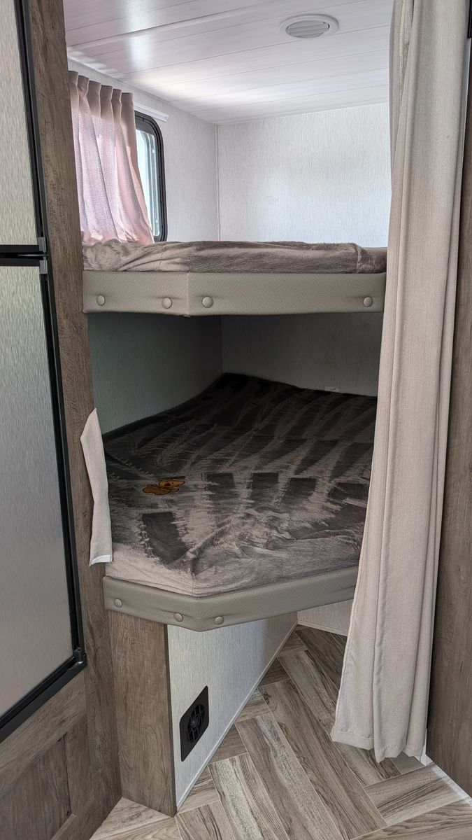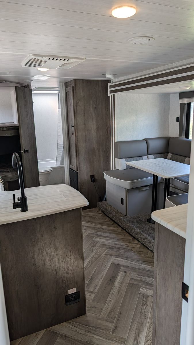 Sleeps 6+ - Private separate front bedroom for the adults and full-size bunk beds in the rear - perfect for the kids or guests - and the kitchen table area converts to a bed as well