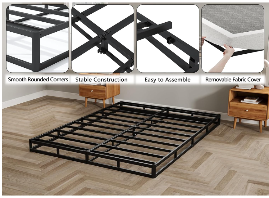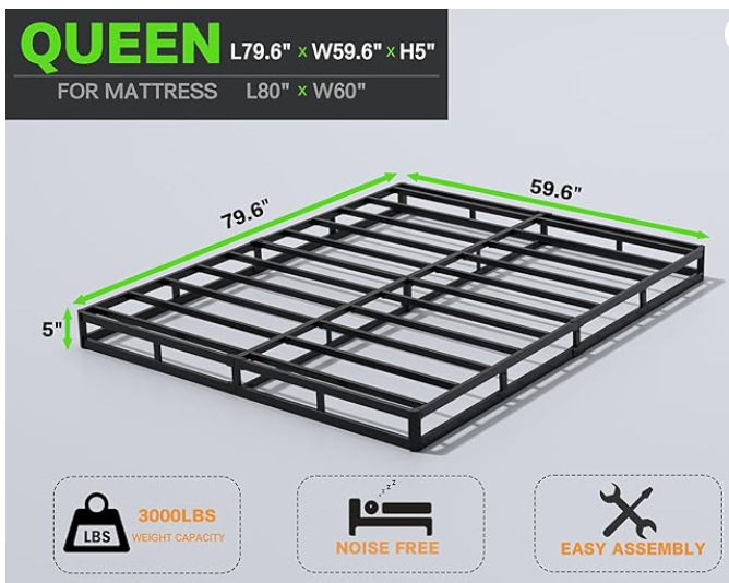5 Inch Box Spring Queen Low Profile Black Heavy Duty Metal Mattress Foundation/Easy Assembly/Non-Slip/Noise Free/Easy Clean Fabric Cover