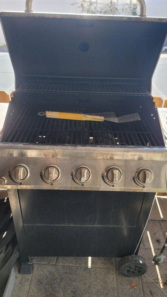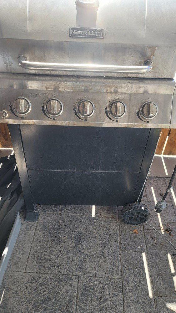 Nexgrill brand. good shape. works great. needs a good cleaning. comes with a full propane tank.