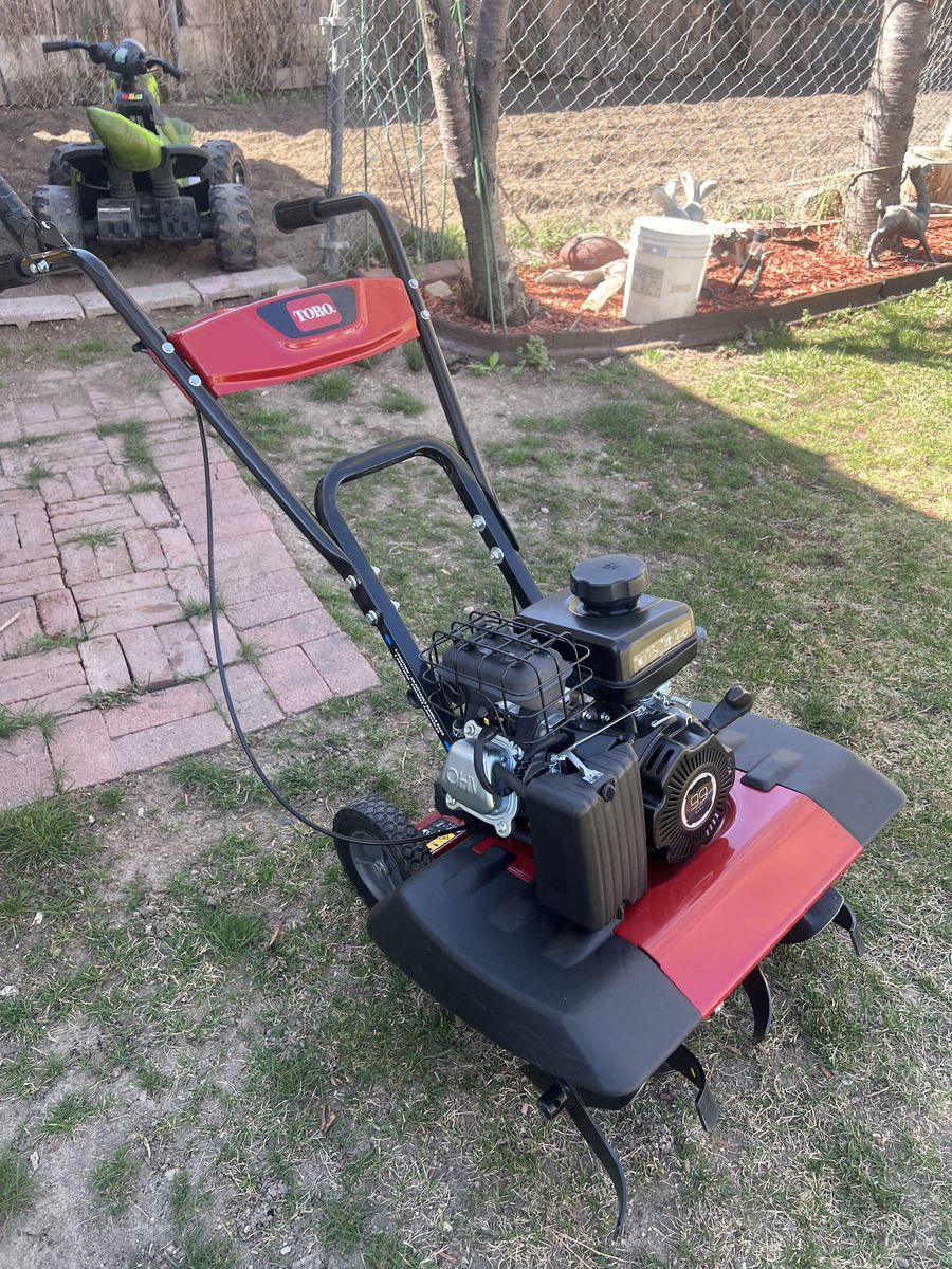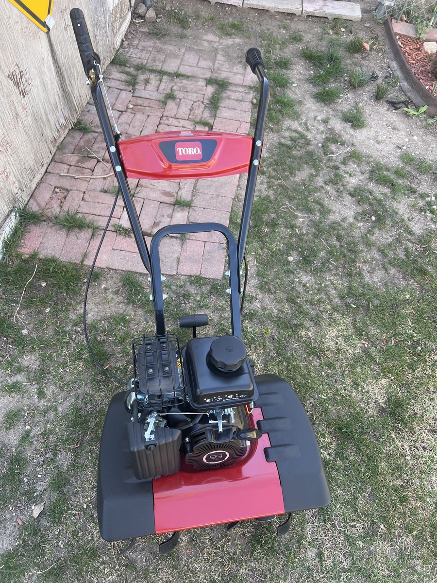 For sale mid-size tiller. Toro brand ..used 2 times for 15 minutes each time. Basically BRAND NEW. NO’T a single scratch!!! Tines still have the stickers.. 22” wide tines !! starts right up…its a new machine!! More questions call or text Asking price 350 $ cash only !! 801 680 0230