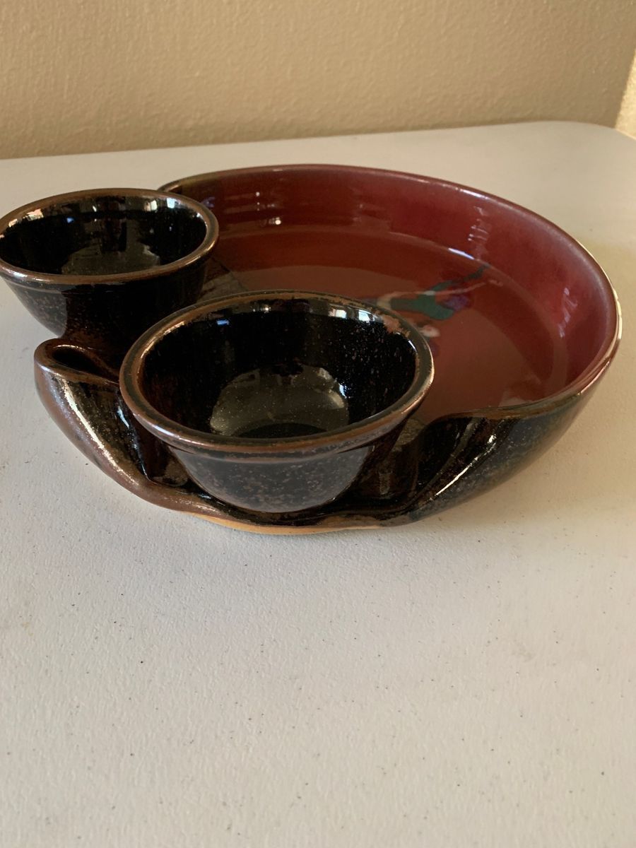 Large serving bowl with two small bowls, perfect for chips and salsa.