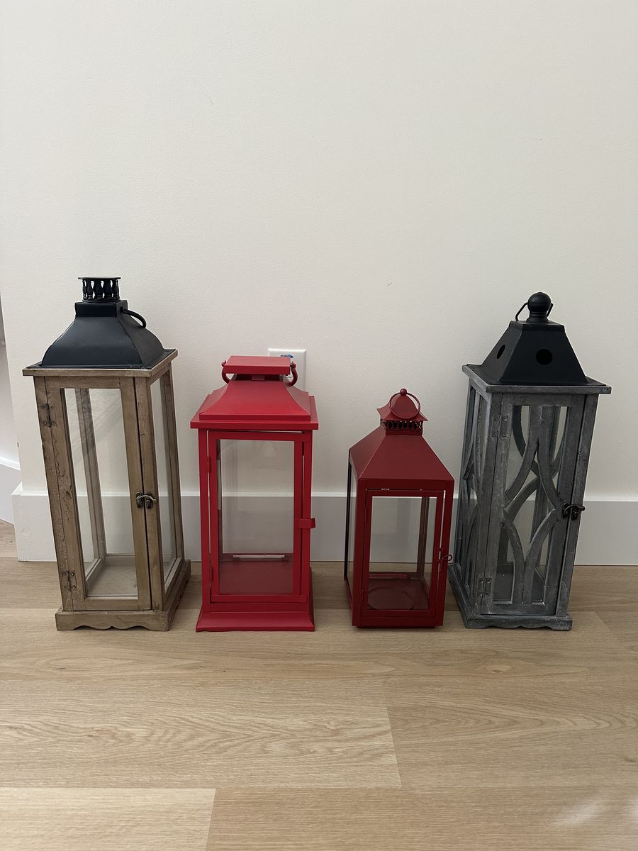 VenmoCute & Tall Lanterns For wedding, Office, Home indoor or out door. Tallest one 22” Tall Asking $26 Gray Tall Lantern 21” Asking $25 Tallest Red Lantern 17” Tall Asking $24 Maroon 16” Tall Asking $18 One with Candle 14” Tall Asking $16 Small one with Candle 12 .5” Tall Asking $12 Total of 6 Thank you! Serious inquiries only please!