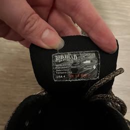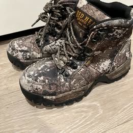 Durable camo hiking boots from Red Head Brand Co. (Cabela’s), youth size 4. Rugged soles and waterproof design. Great for outdoor adventures.