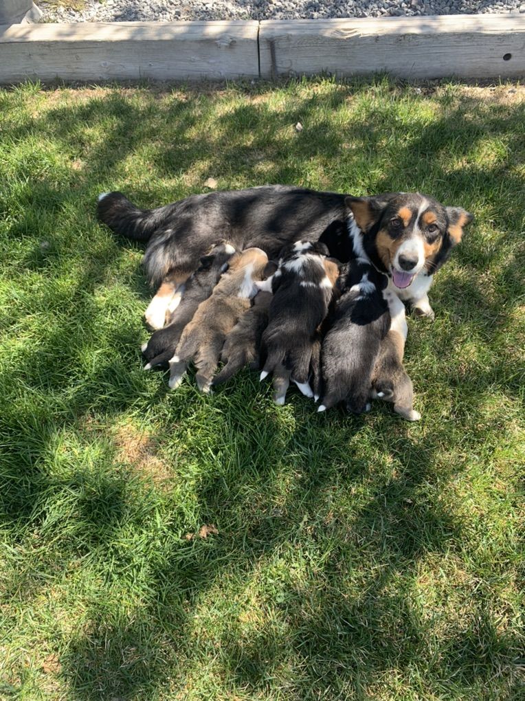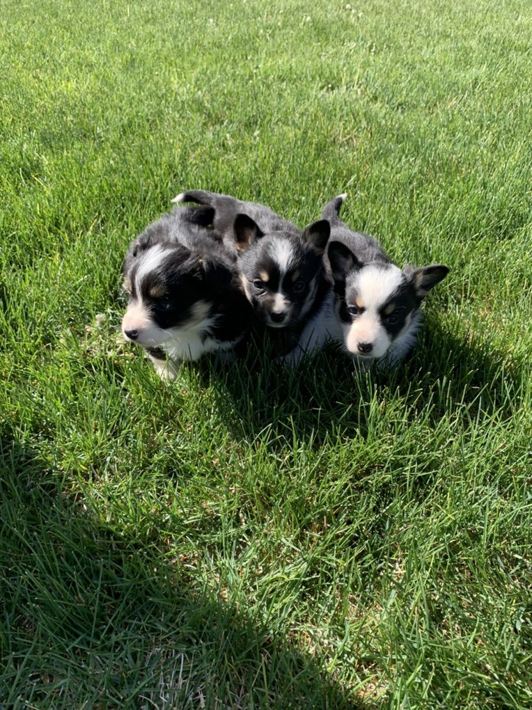 Three tri females, 2 have long hair. All 4 males have long hair and will be red! They are 67weeks old healthy and happy and ready to go. Eating and drinking good. First vaccinations and dewclaws removed. Tails left long with white tips. I own mom and dad and they are sweet dogs!! Pictures of mom and dad. Dads a registered red pembroke welsh. Moms a registered tri cardigan welsh. With Americans you’ve got the best of both worlds, playful, loyal and loving personalities!! Videos available