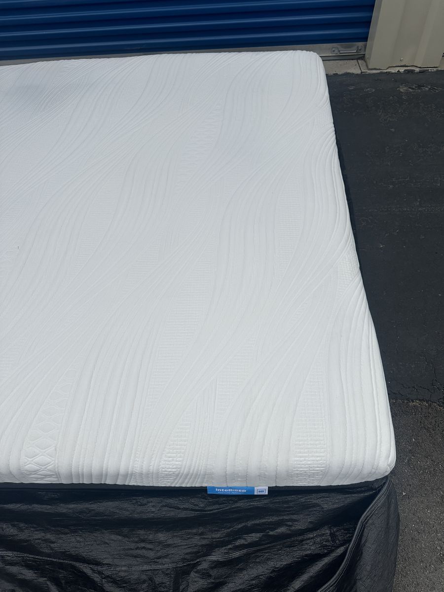 Check out this 11” intelliBed king mattress. Overall, it is in great new condition. There are some noticeable imperfections, some light discoloration from use, and tiny water stain that is hardly noticeable, some signs of use, etc.