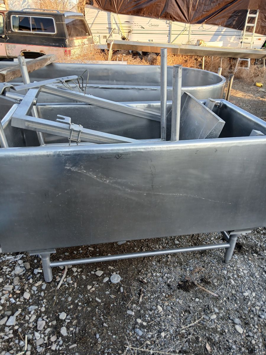 Nice cheese vats stainless steel jacket. 25 and 150 gallon hot water heated. 25 gallon $3000. 150 gallon $6000