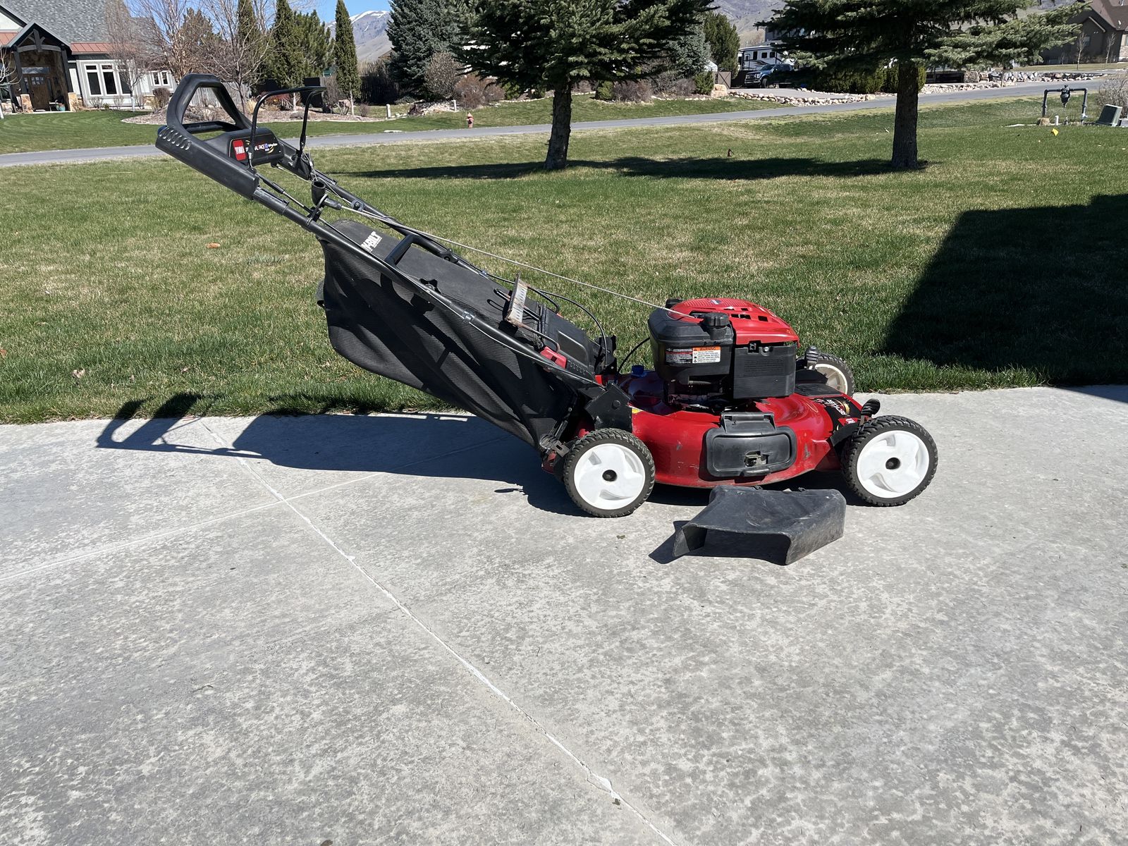 This has a new transmission in it, the bag is not the correct one for this machine but works ok. Has lots of power, works great, starts easy and is in excellent condition. Mower has had only ethanol free gas used in it.$200.00 firm. CASH OnLY!!!