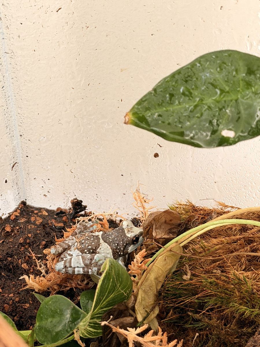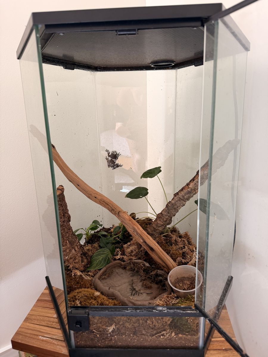 ApplePayAdult female Amazon milk frog with cage and supplies.