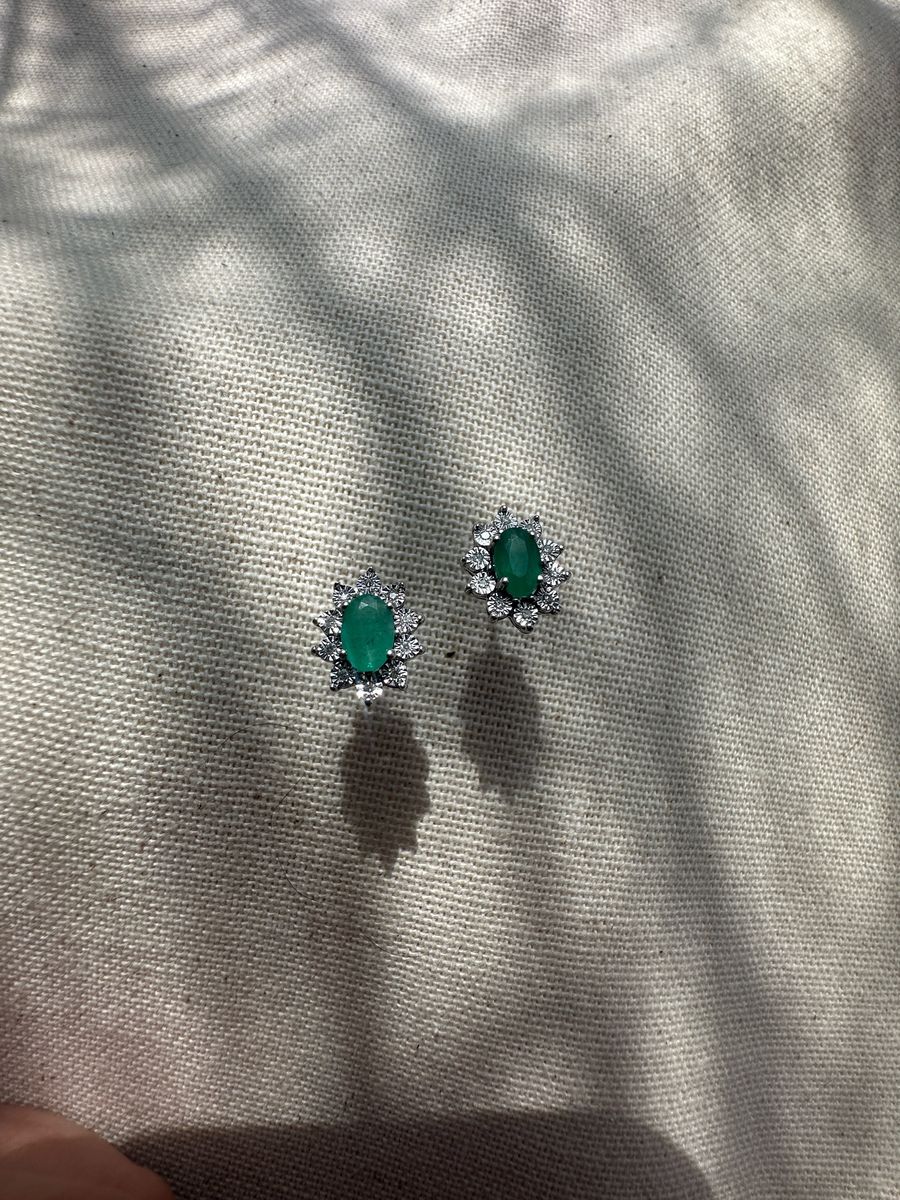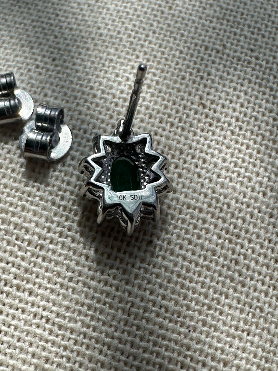 ApplePayBreathtaking Earrings with Natural diamond and Emerald set in 10K white gold. Each piece has a unique shine and beauty; great for everyday wear or as an anniversary gift. Brand new condition. Message me for details or bundle pricing!