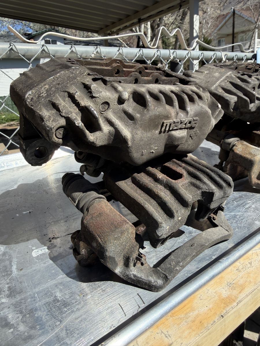 ZelleFront and Rear set of Turbo II Calipers. Asking $500 for all or $300 individually pair for either front or rear set. These will fit all 86-91 Mazda RX7 models. Recommend to clean and rebuild. Located in Farmington, no holds. First come first served.