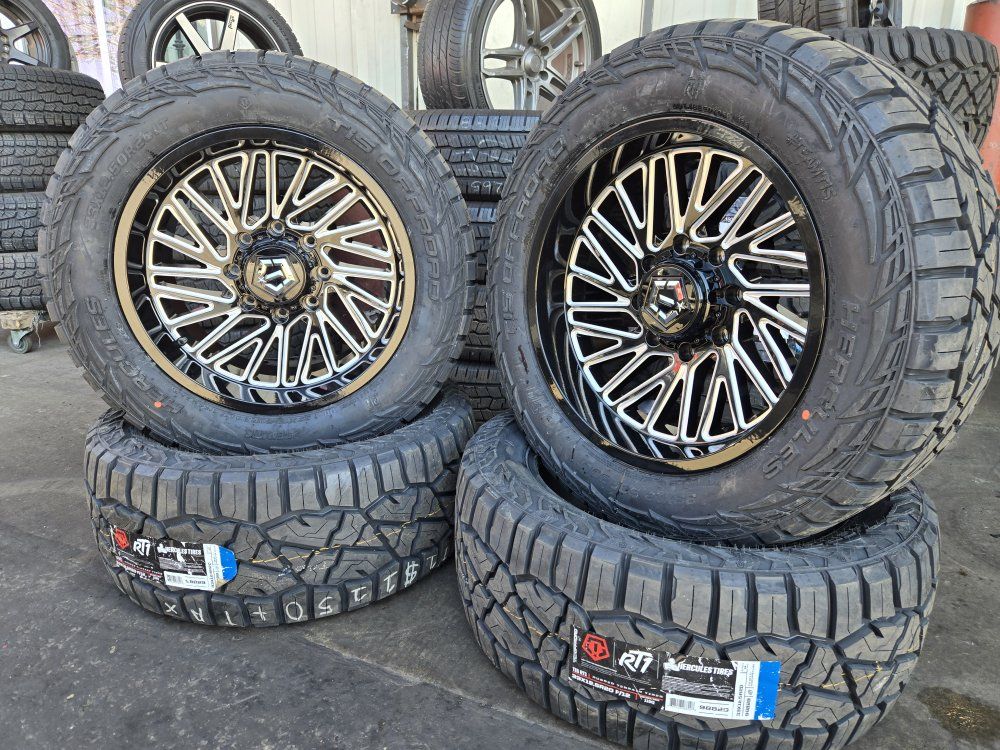 SET DE RINES 20X10 CON PATTERN 8X180 CON LLANTAS NUEVAS 33X12.50R20LT HERCULES RT1 ENTREGANDO CON INSTALACION Y BALANCEO EN OLIVER TIRES 3010WEST 500SUR EN SALT LAKE CITY #11 CONTAMOS CON FINANCIAMIENTO SNAP Y ACIMA PARA PAGO EN 90 DIAS.