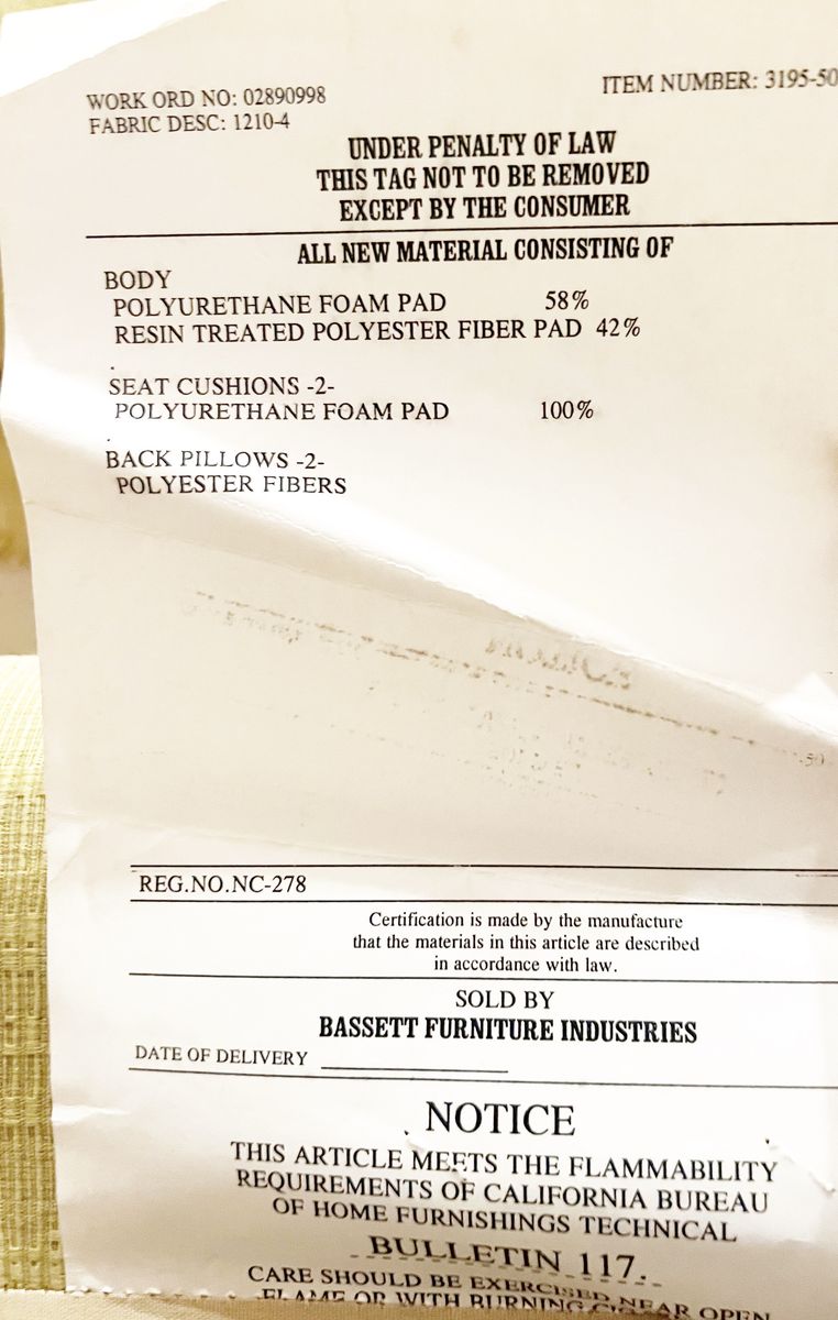 Brand- Bassett Furniture Fabric- polyurethane / polyester