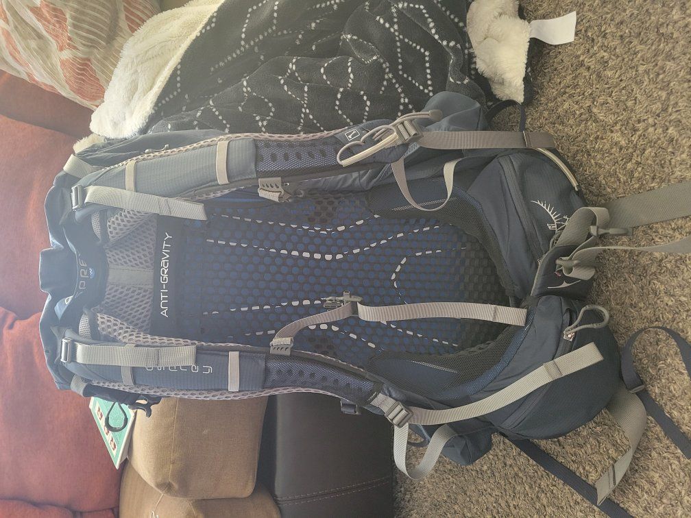 Osprey Atmos 65 medium size in great shape. I've only used this 2-3 times on short multi day trips. All zippers work normally. It has no rips. Awesome back ventillation. Construction is solid and without compromise from the little use it's seen. The Atmos is one of the best rated backpacks of all time and a staple for many for longer trips needing to carry heavy loads.
