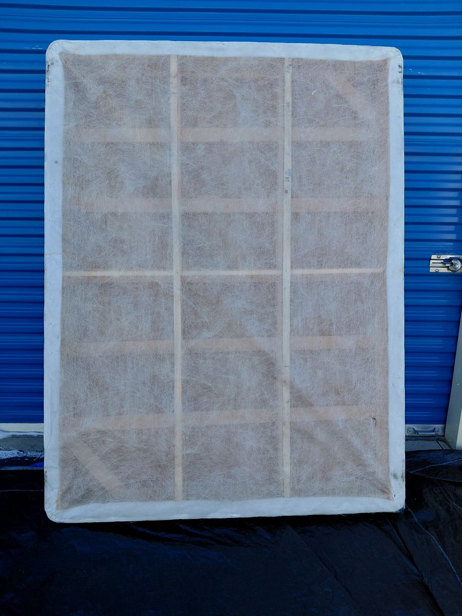 Check out this queen box spring. Overall, it is in good condition. There are some noticeable imperfections and blemishes, some marks on the side from moving, some visible signs of use, etc.