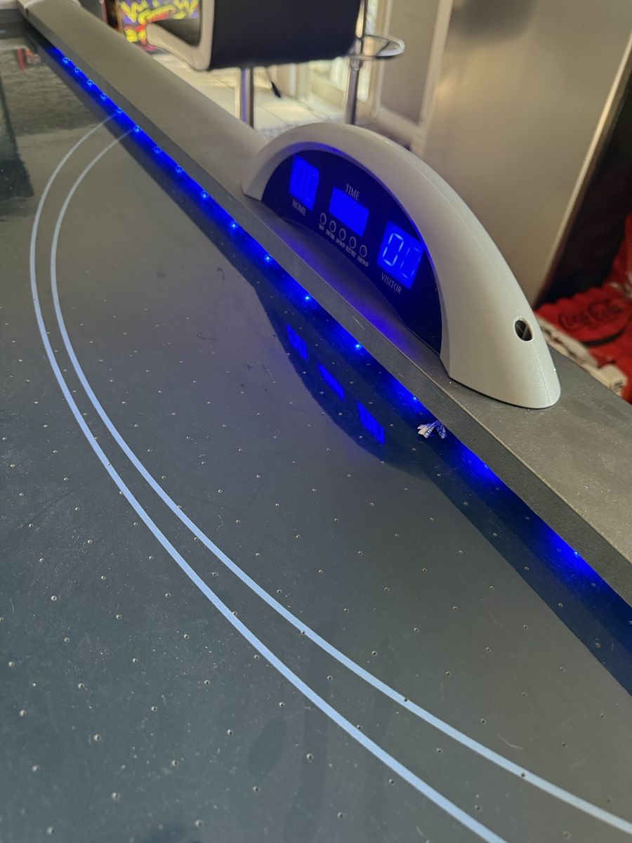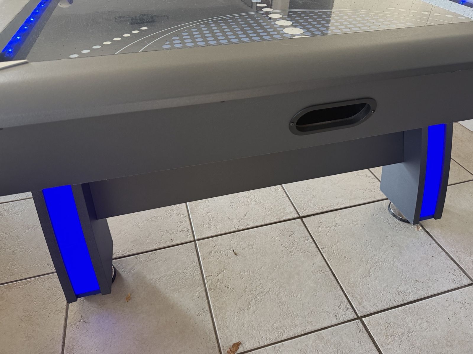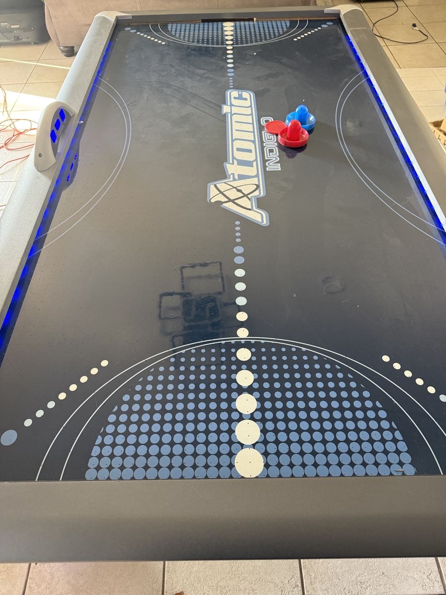 Air Hockey Table with LED Lights. Have had for about a year, looking to get a pool table so this has to go. Has some damage from shipping see photos. Must pick up and take away.
