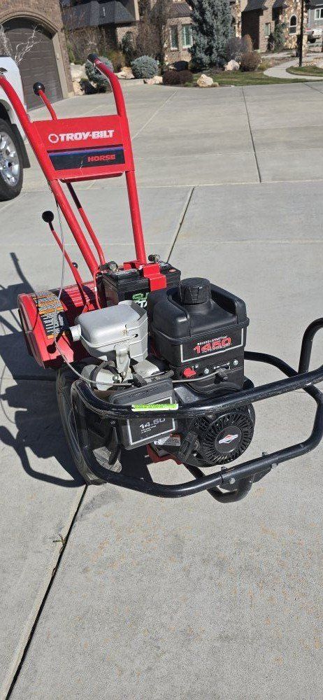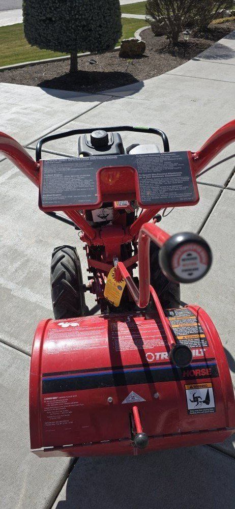 Troybuilt Horse Rear tine tiller Electric Start Engine Guard 22 inch tilling width Motor upgraded to 305 cc which is approximately 10 hp There is not much this machine can't go through New you are looking at $3700 to $4000 plus tax Extremely good condition, kept garaged