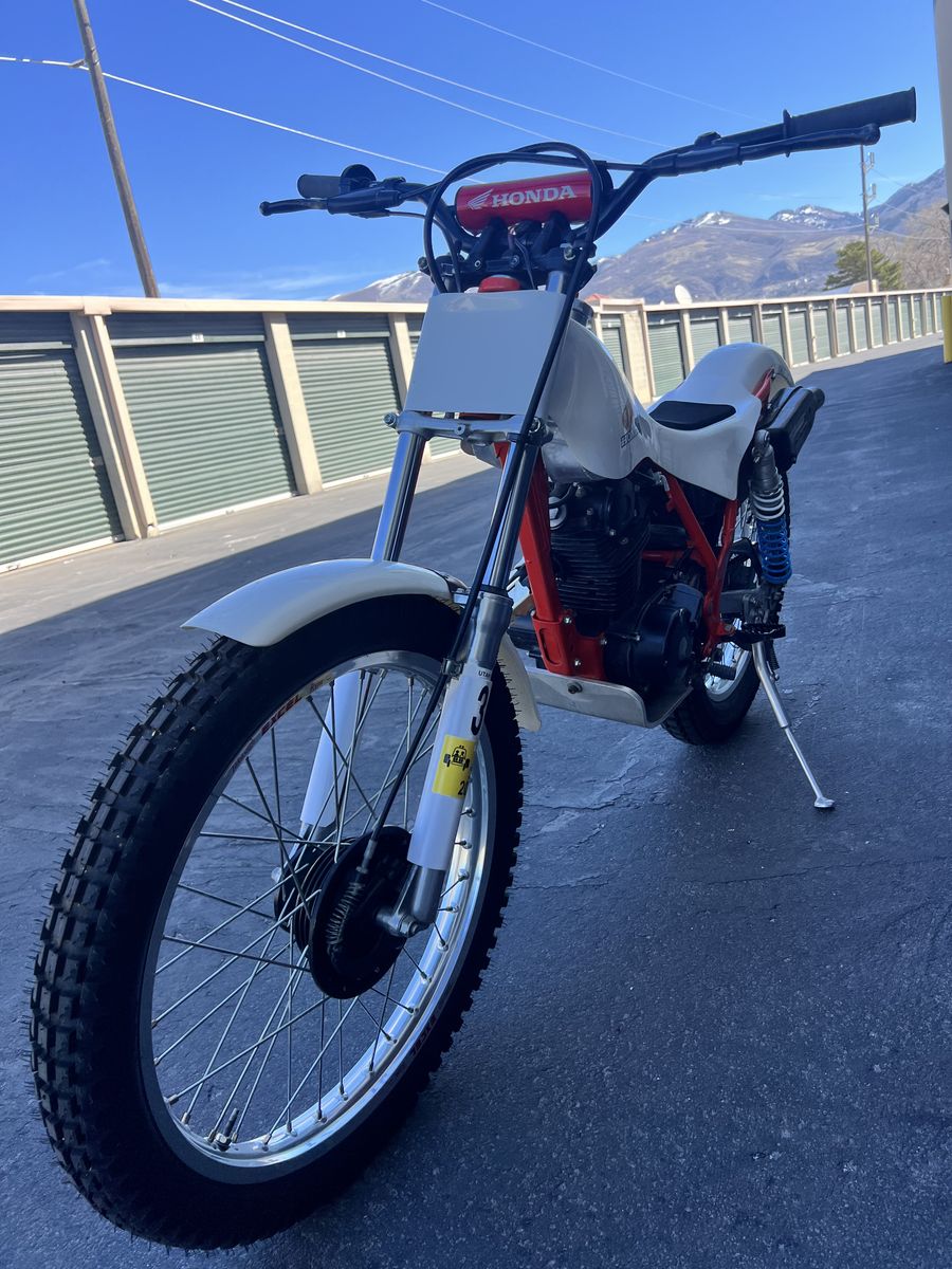 Comp-ready full conversion Honda Reflex. Custom Takasago Excel wheelset. New IRC Trial Winner tires. Custom skid-pan. Widened footpegs. Shedworks fuel-cell w seat/tank cover. Works Performance shocks. Pipe protector. Aluminum kick-stand. Trials gearing. Rebuilt forks.