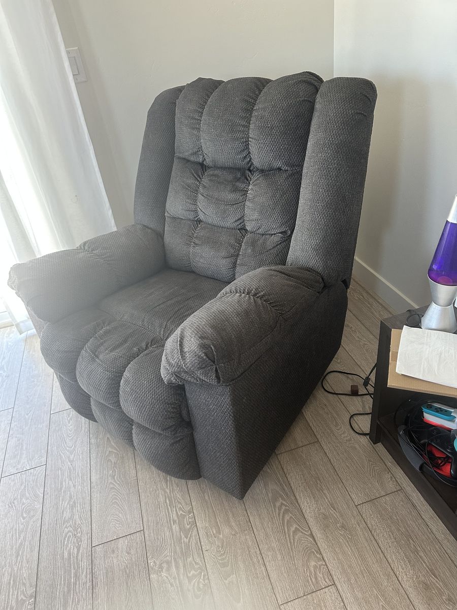 Ashley rocker recliner chair with heat and massage. Perfect for an expecting mother to rock and nurse baby. Moved and it does not fit my new space. OBO