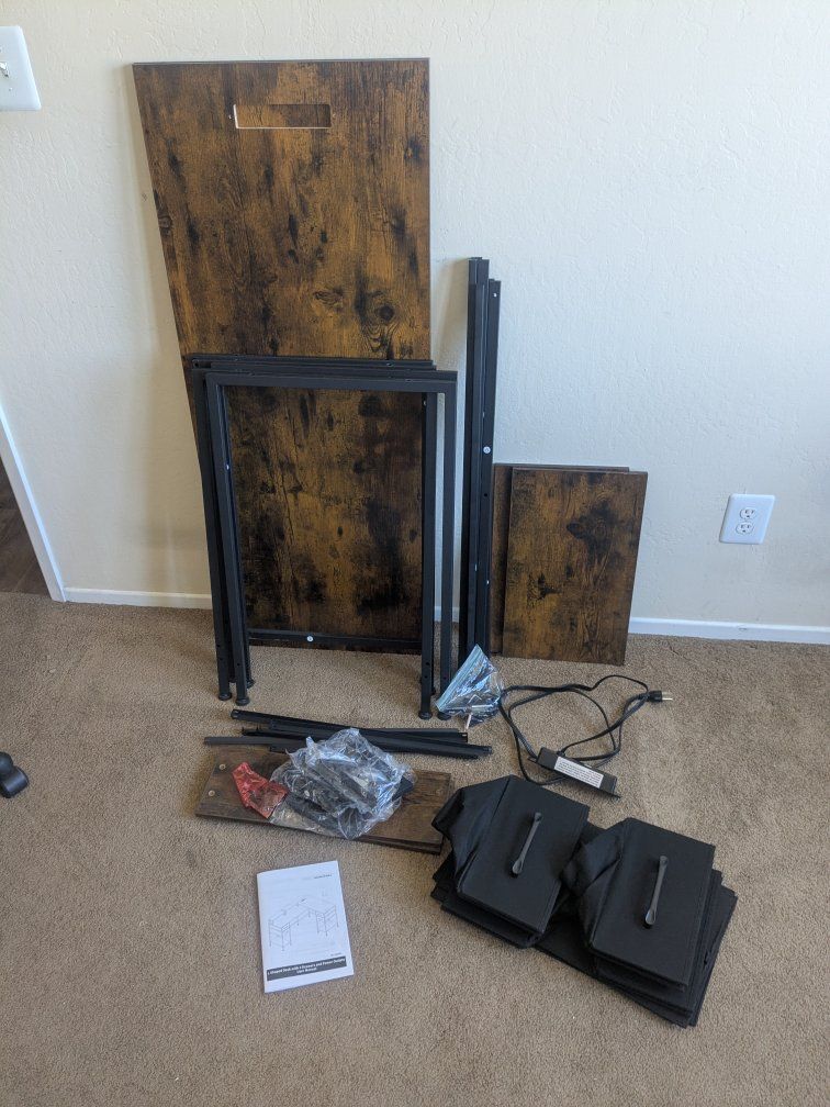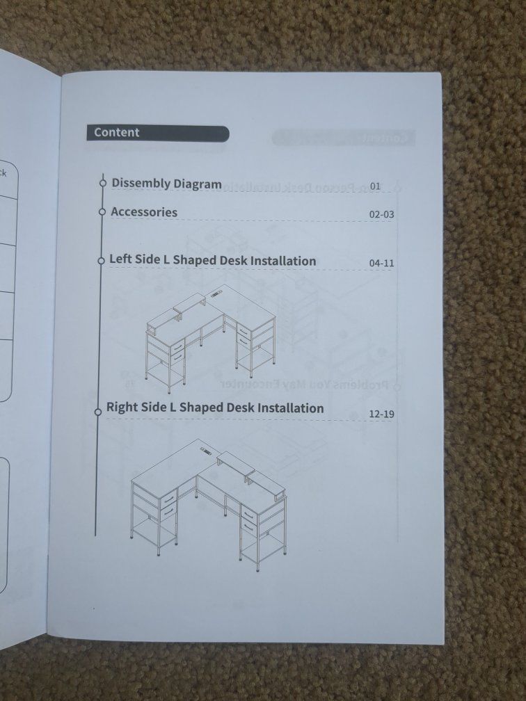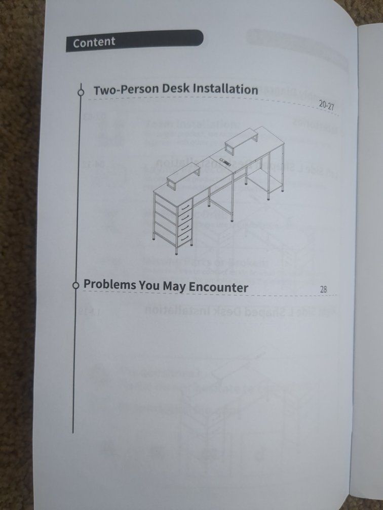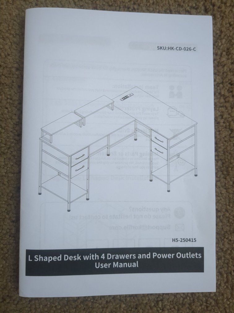 VenmoLightly used desk. Can be put together in 3 different shapes (Left side L, right side L, or 2 person). 2 sections, both 47" by 19". Working power strip, user manual, 2 monitor stands, and all hardware that came in the box included.