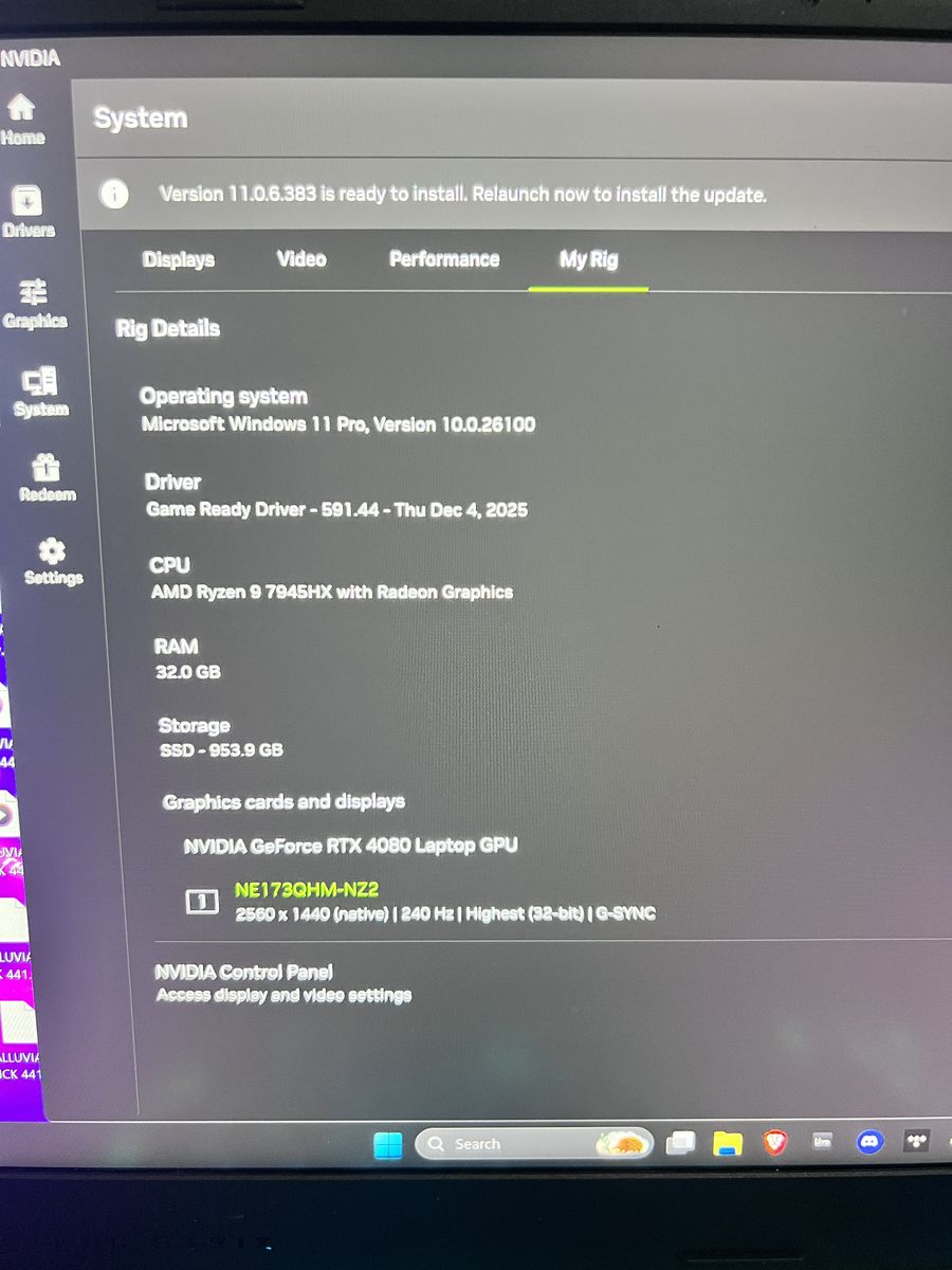GPU: Nvidia GeForce RTX 4080 Laptop GPU 240Hz