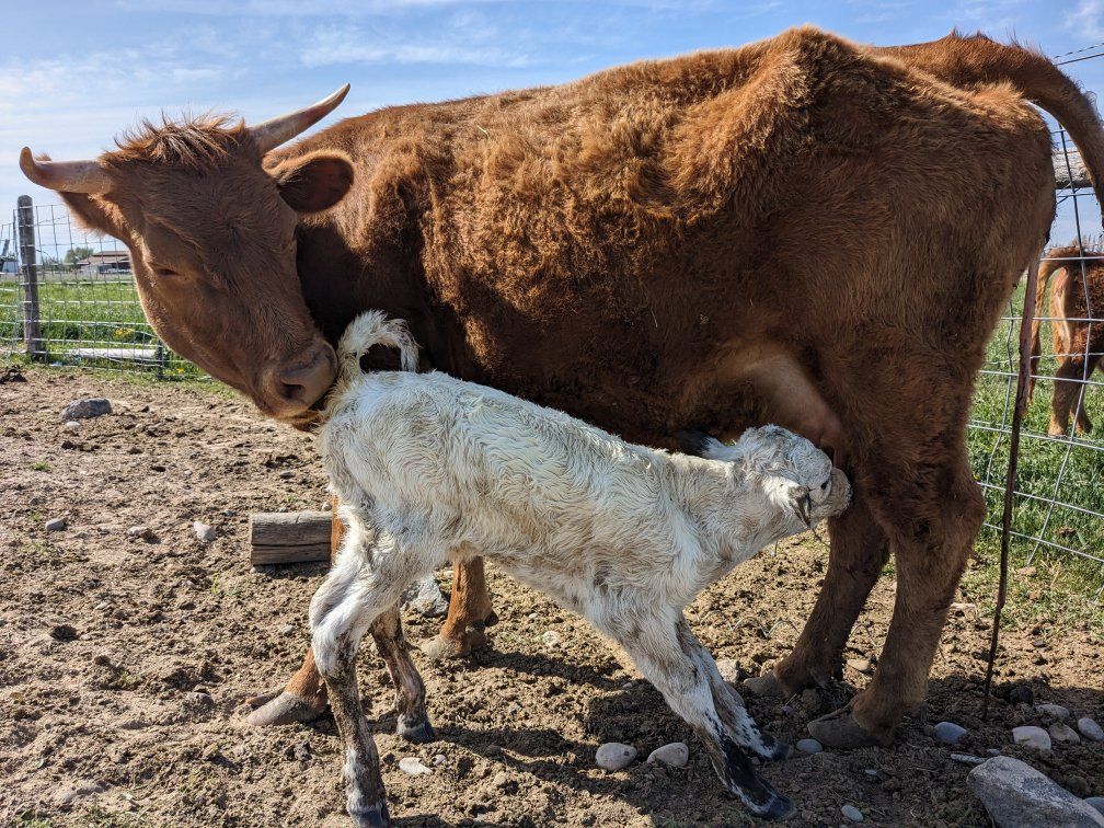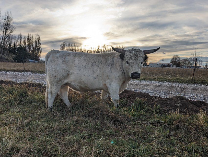 Looking to add some white to your herd? Apollo (5/18/24) just finished covering all the ladies and is looking for a new pasture. He comes from great Dexter milk and meat lines. Apollo's dam, Lisbon, is a beautiful red 3/4 Dexter and 1/4 Jersey (pictured). His sire, Antonio, is a great looking White Dexter (last two pictures).