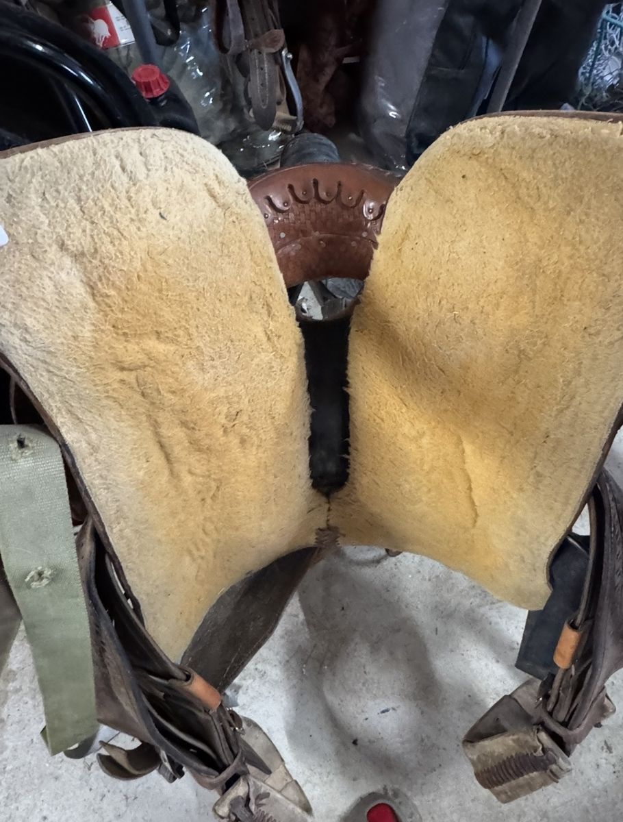 14”, gullet is wide, built for them bigger horses. Super comfy, hate to part with this saddle. Fits a kid or lady really nice. Fancy back cinch buckle