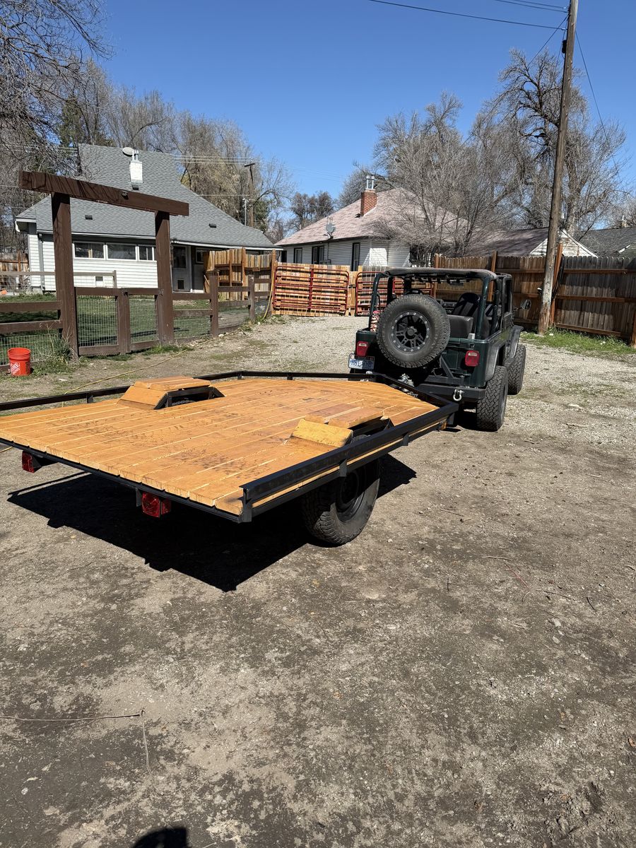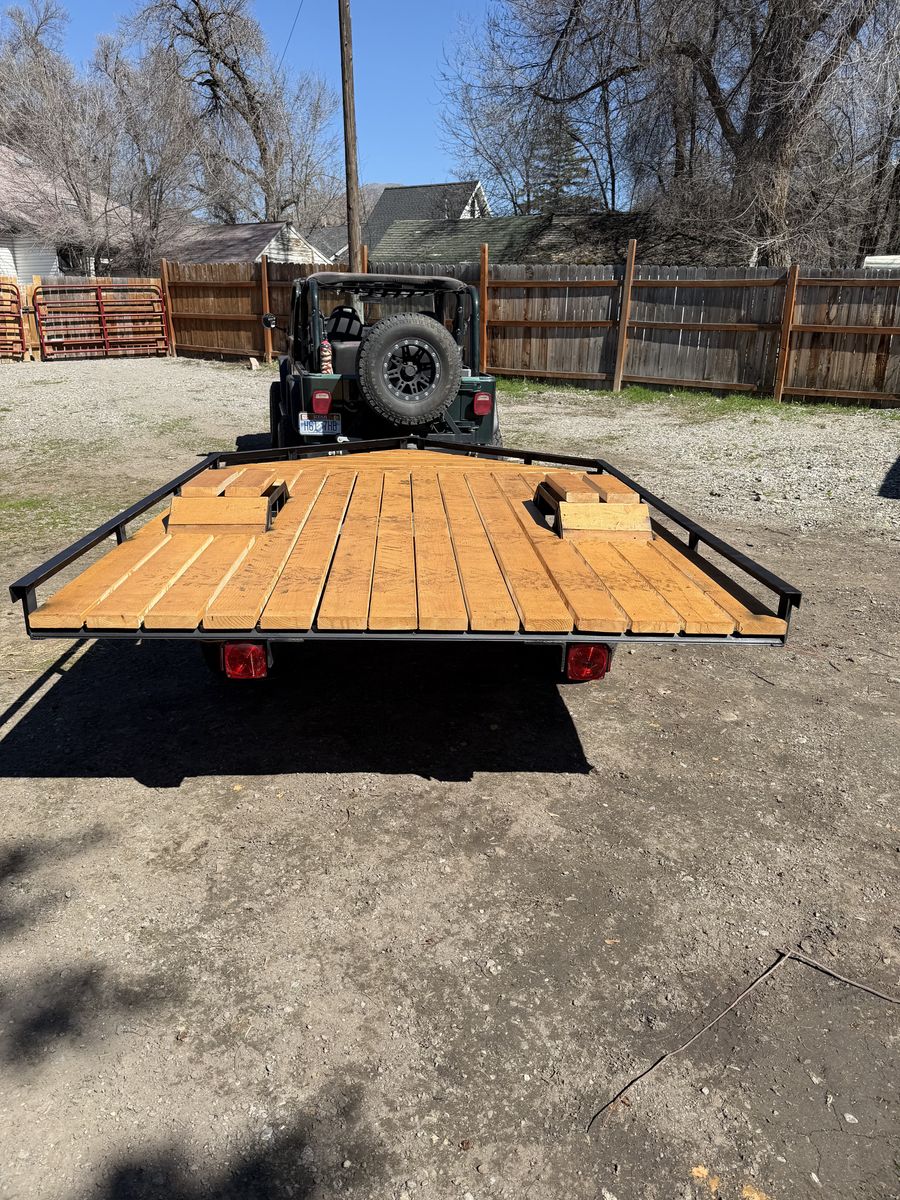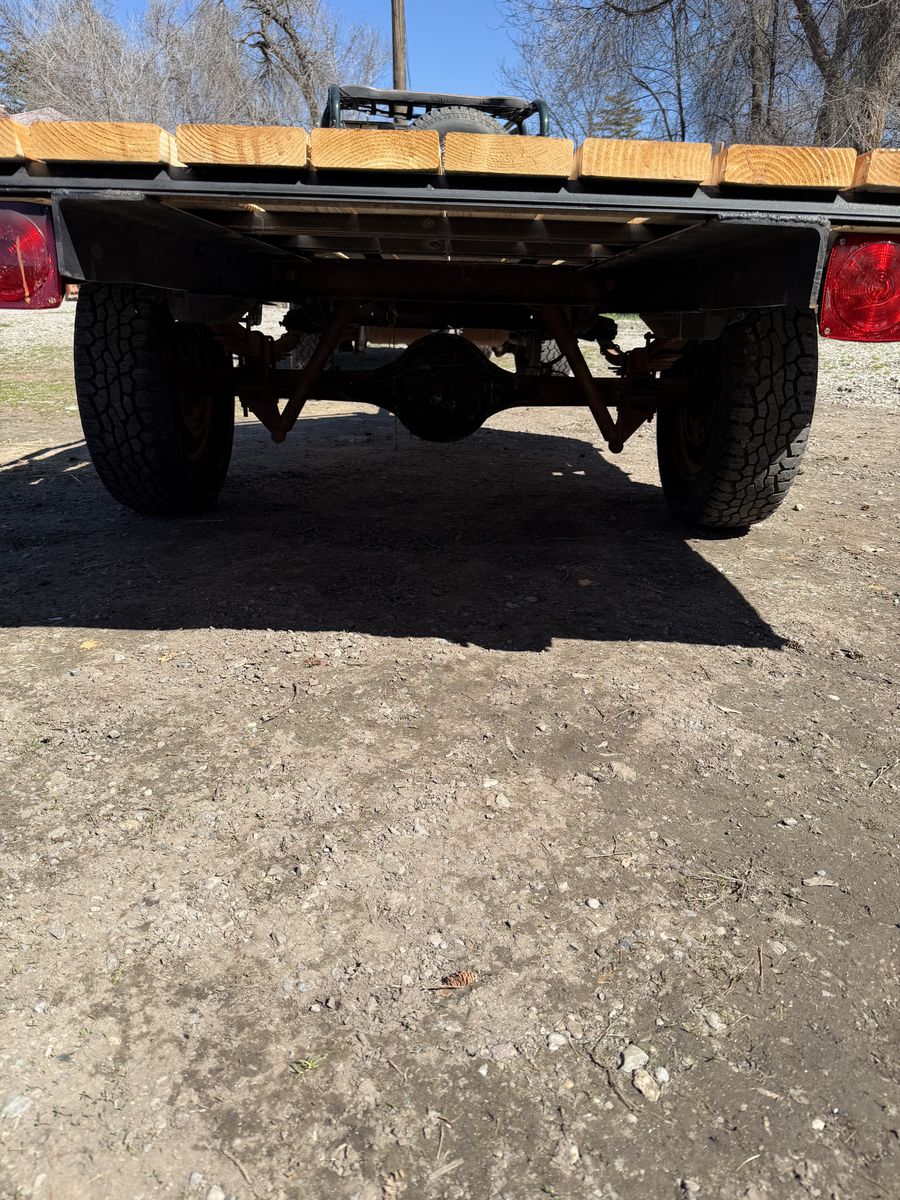 Single axle ATV Trailer 7’ wide 8’ square and 11’ to the deck nose for carrying gear and gas. This is a home build trailer on a truck axle it’s got a new deck new lights, newer tires 80% tread left and a new coupler. This trailer carries 2 quads side loaded, With plenty of room for the ramps and gear up front. I have carried two rototillers on this trailer each weighing 590lb and that seems to be about the maximum weight. This trailer pulls straight and rides really well. Willing to sell with the ramps or without. Ramps are 6’6” long and 12” wide. They are super heavy duty.