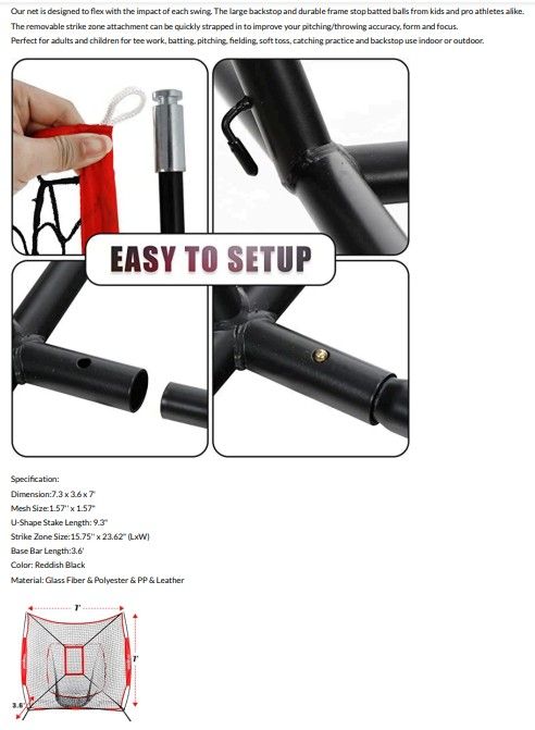 ZelleZen Sports makes the very best practice nets for baseball and softball. This net is like new and only used maybe 3 or 4 times by my daughter.