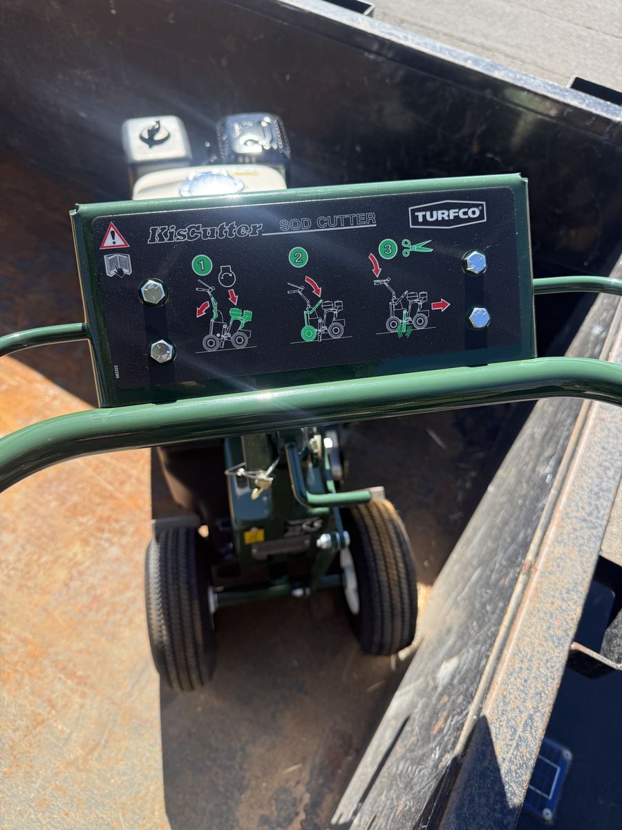 Turfco KisCut sod cutter, Honda GX160 motor, new $1900
